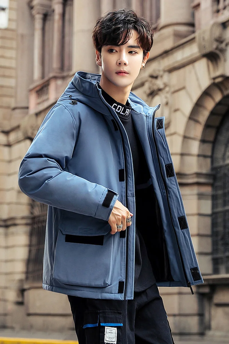 Мужская теплая свободная однотонная куртка, качественное зимнее пальто, уличная одежда, пуховик с капюшоном, трехмерные большие карманы