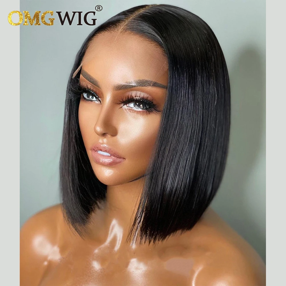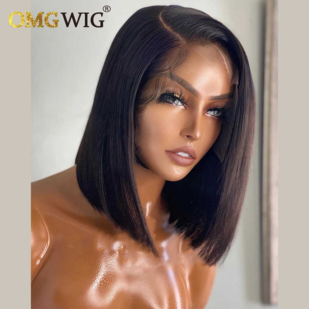 Короткие бразильские человеческие волосы Remy, парики для черных женщин, прямые HD прозрачные парики на шнурках 4x4 13x4, парик с фронтальным кружевом