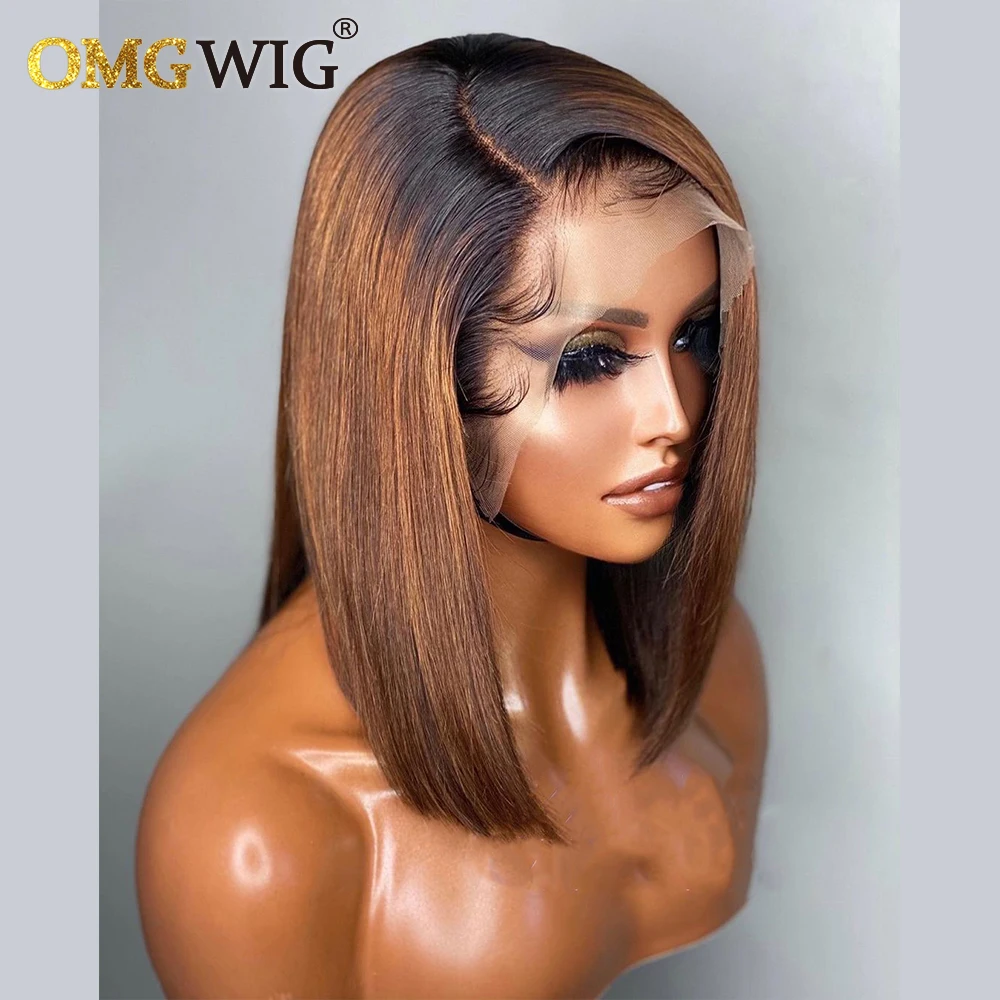 Короткий бразильский парик из человеческих волос Remy для черных женщин, прямой парик HD с прозрачной застежкой на сетке 4x4 13x4, парик с фронтальной сеткой
