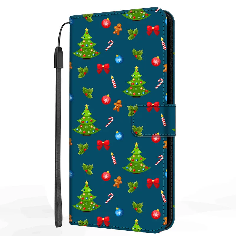 Рождественский кожаный чехол-книжка для Xiaomi Redmi 9 9T 9A 9AT 9C...