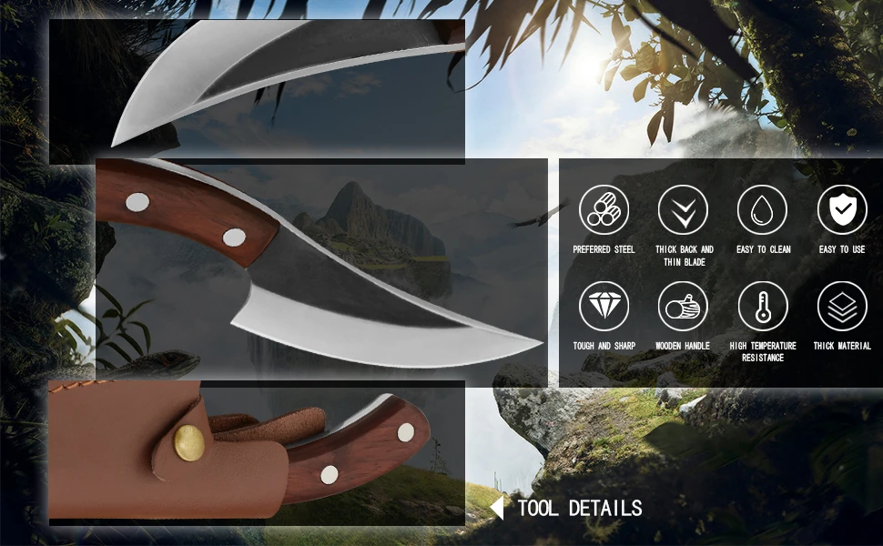 Материал лезвия: кованая Высокоуглеродистая сталь ручной работыОсобенности:Подходит для измельчения и нарезки: нож шеф-повара Sowoll с отличной жесткостью, бритвенным шарфом, подходит для мяса, рыбы, овощей.Ручной Кованый нож шеф-повара: китайский кухонный нож изготовлен из марганцевой стали вручную, ручка и лезвие интегрированы без пайки, который является прочным и прочным для устранения сломанной ручки.Длительный срок службы: ручной работы выкованные разделочные ножи заточены вручную опытными работниками, по сравнению с другими кухонными ножами, изготовленными механическими способами, срок службы таких ножей шеф-повара намного дольше.