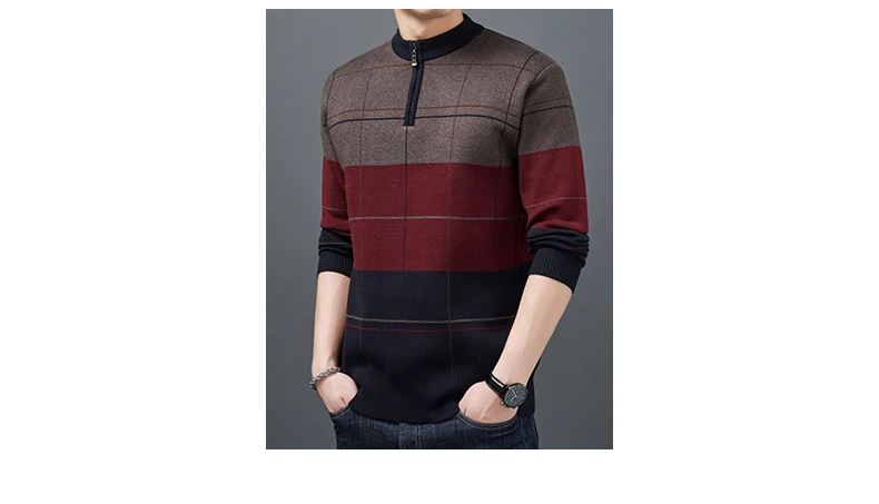 Новый брендовый Модный зимний теплый свитер, Мужская трикотажная одежда, Джерси на молнии, облегающий полосатый Повседневный пуловер, мужская одежда Y408