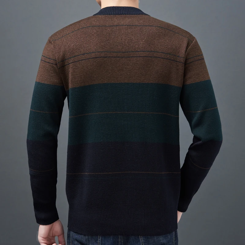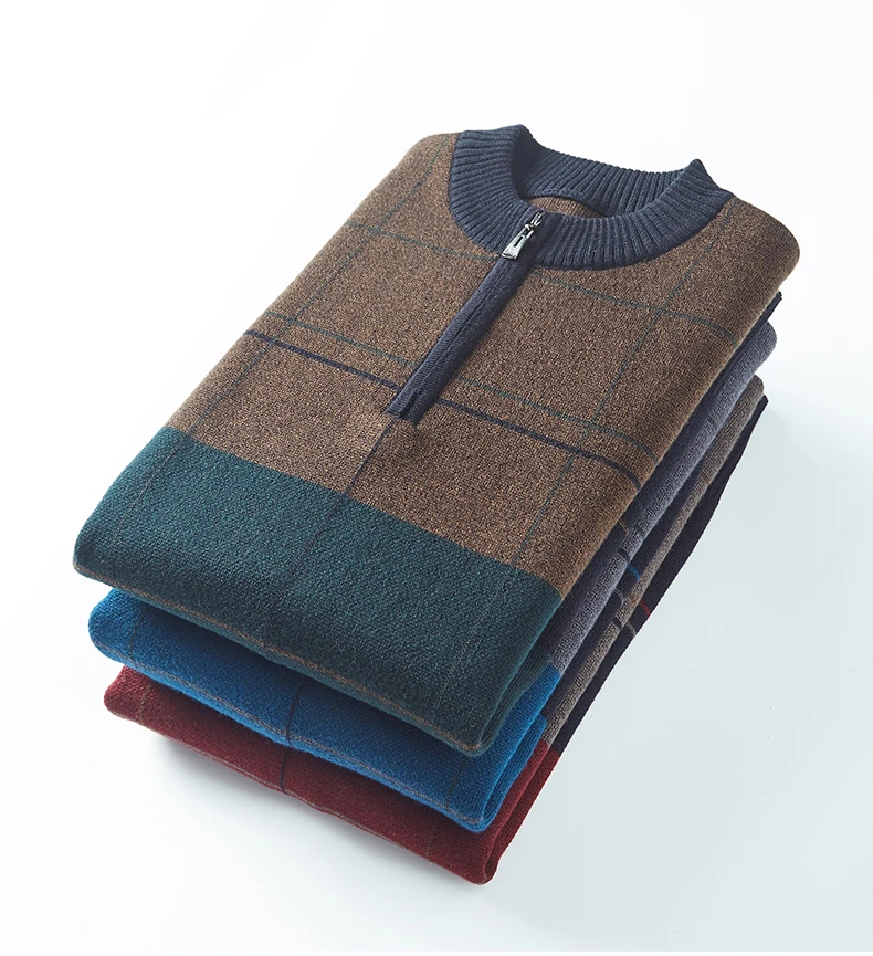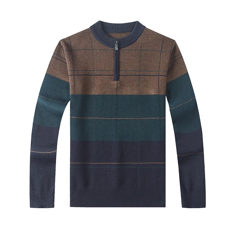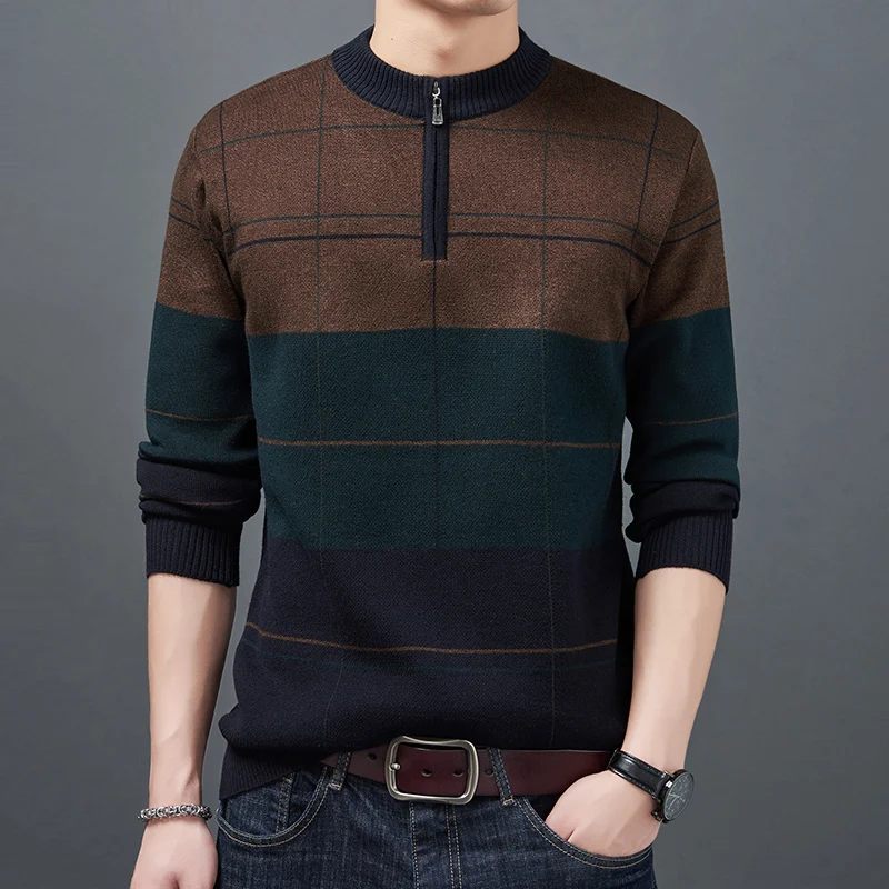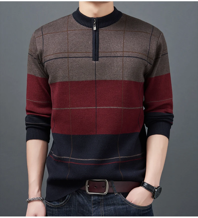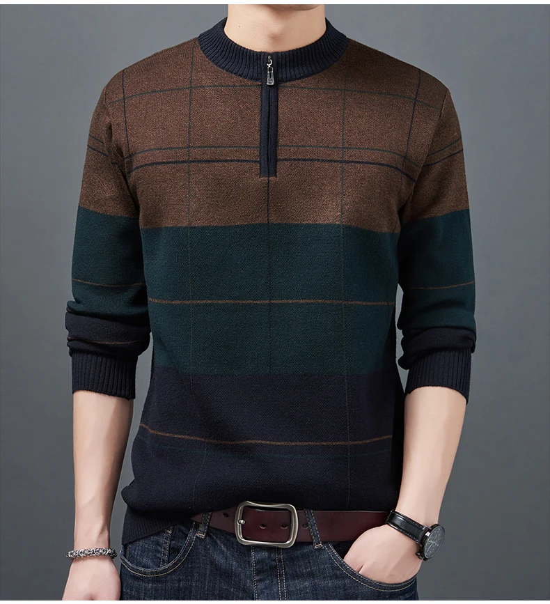 Свитер мужской шерстяной на молнии, зимний, теплый, полосатый
