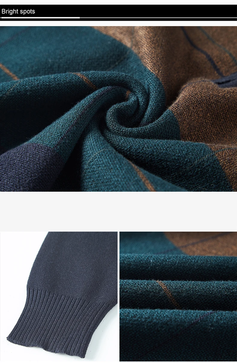 Мужской теплый шерстяной свитер MIACAWOR, пуловер в стиле пэчворк, ...