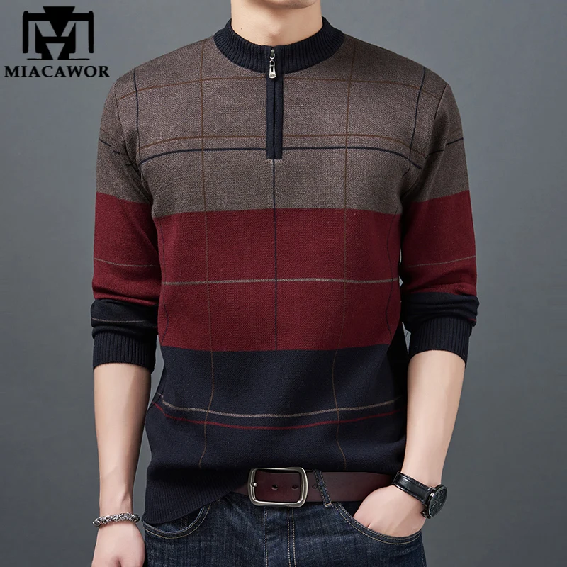 MIACAWOR зимний свитер мужской Повседневный пуловер на молнии мужск...