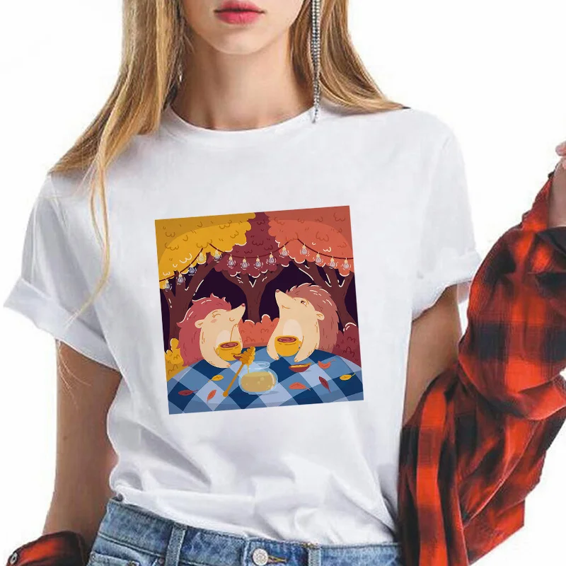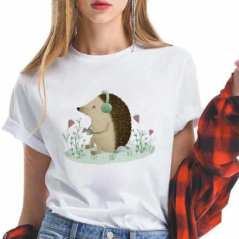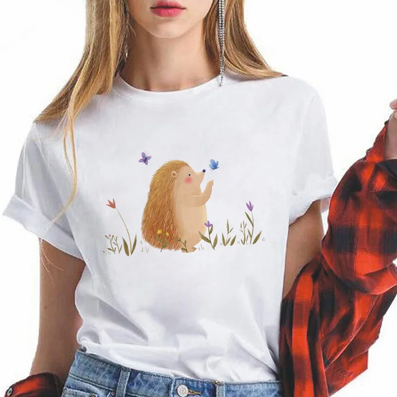 Футболка женская с рисунком ежика, модный топ с коротким рукавом, мультяшная одежда, 90-х годов