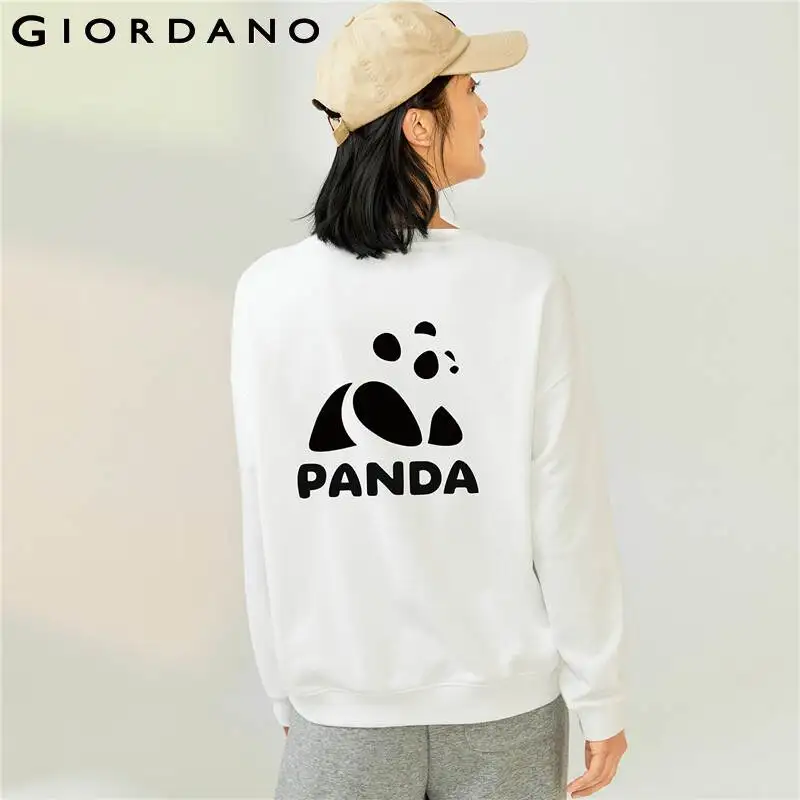 Толстовка Giordano мужская с круглым вырезом, свитшот с принтом панды, повседневный свитшот с круглым вырезом и длинными рукавами в рубчик, 91091359