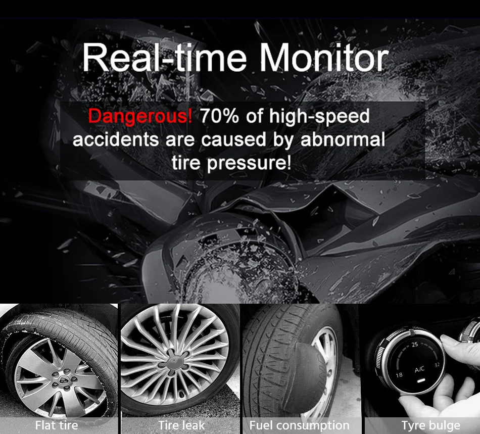 Дисплей экрана может четко отображать давление и температуру в 4 раза в режиме реального времени, чтобы обеспечить безопасность вождения!