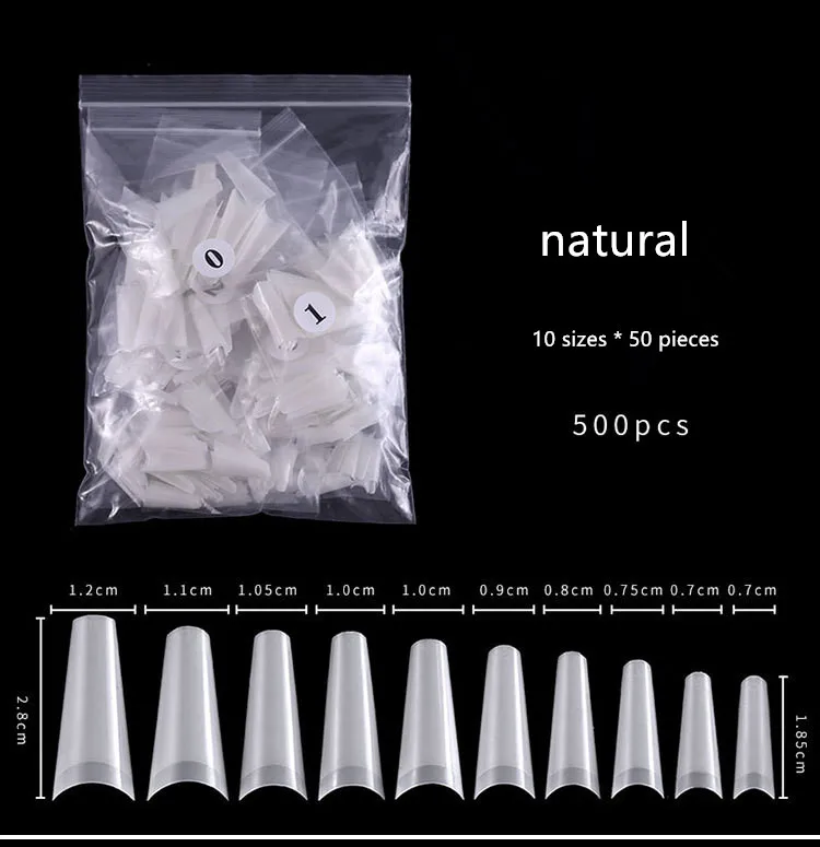 500 шт. акриловых кончиков для ногтей с 10 различными размерами.