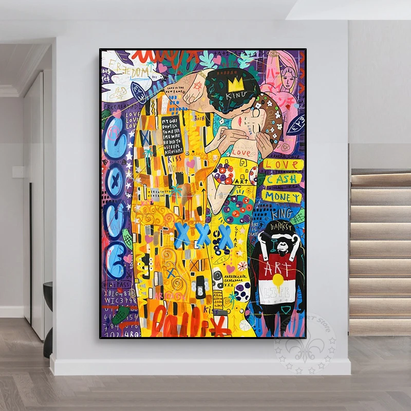 Бэнкси Густав Климт поцелуй граффити постеры поп-улица Картина на холсте и принты известные картины искусство картина для домашнего декора стен