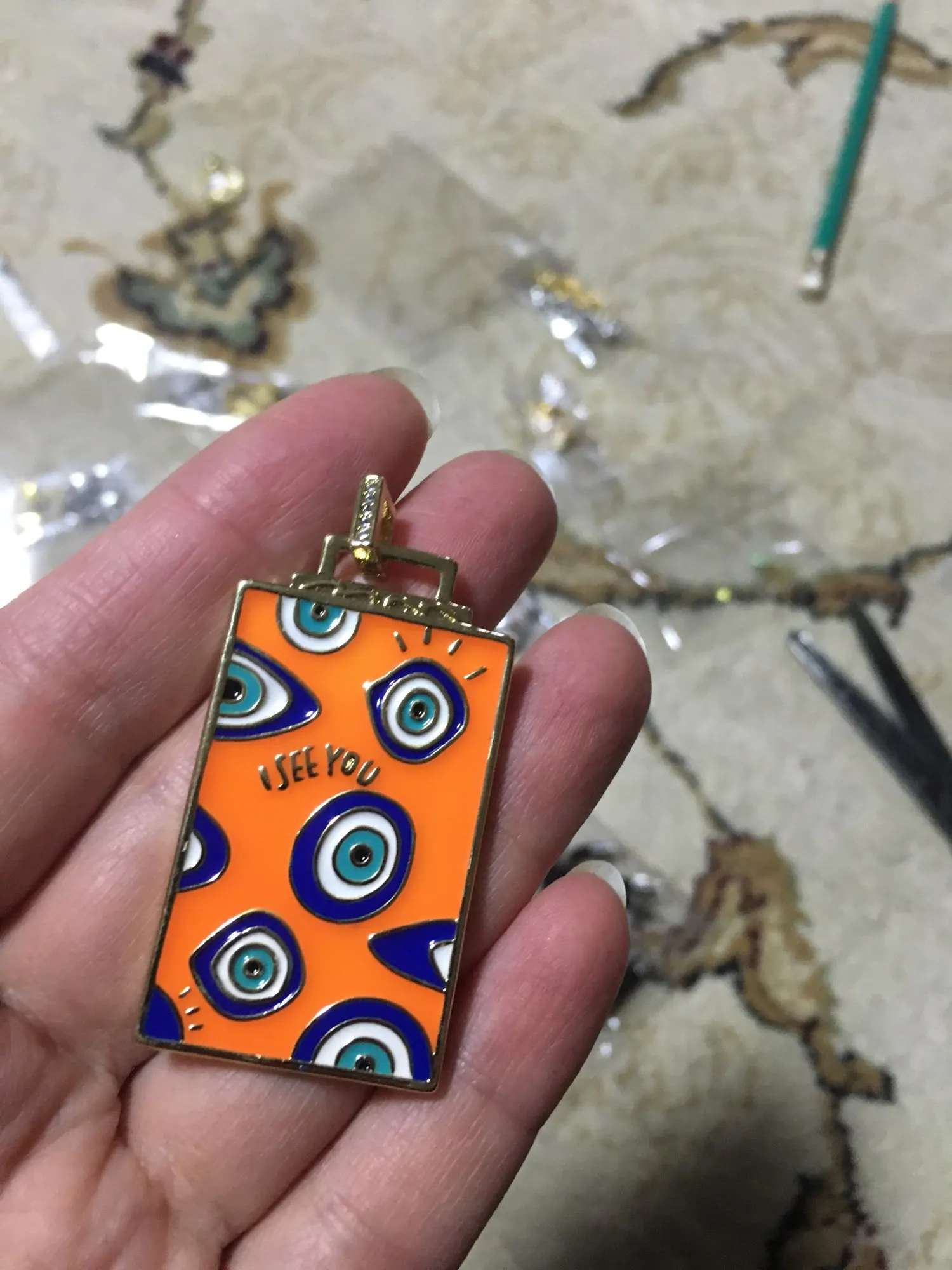 Juya ручной работы Декоративные 18 к позолоченные эмалевые греческие Фатимы сглаза прямоугольные амулеты для DIY Рождественский кулон для изготовления ювелирных изделий