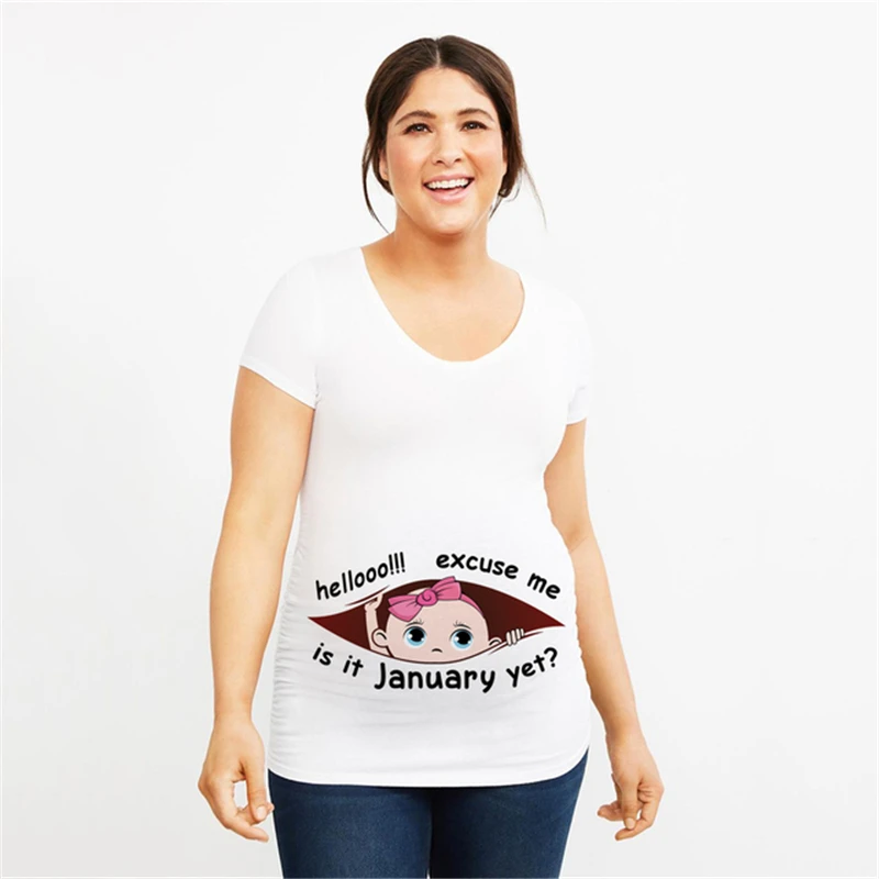 Извините, я сейчас январь, 12 месяцев, летняя футболка для беременных и матерей, женская футболка, Одежда для беременных с буквенным принтом, забавная футболка