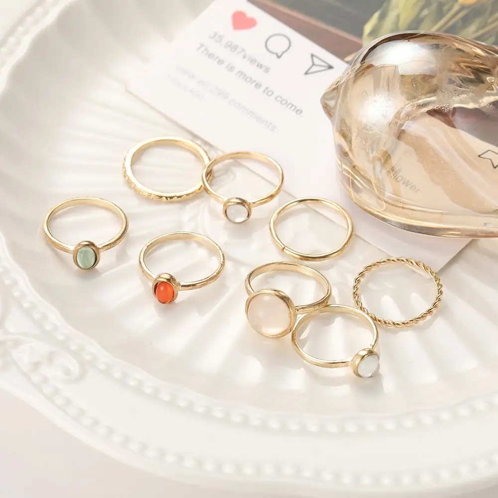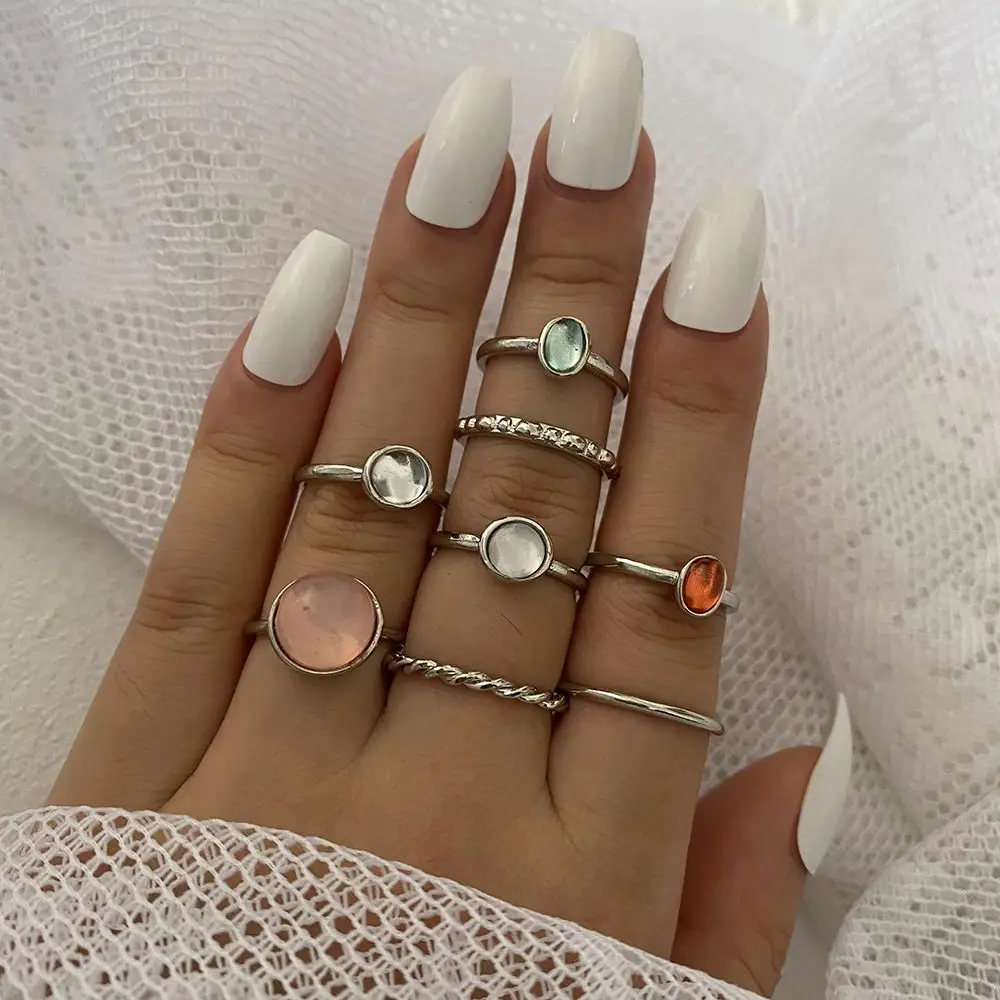 Новинка Корея 8 шт.компл. винтажный красочный камень металлическая цепь модные геометрические Популярные Кольца Набор для женщин ювелирные изделия