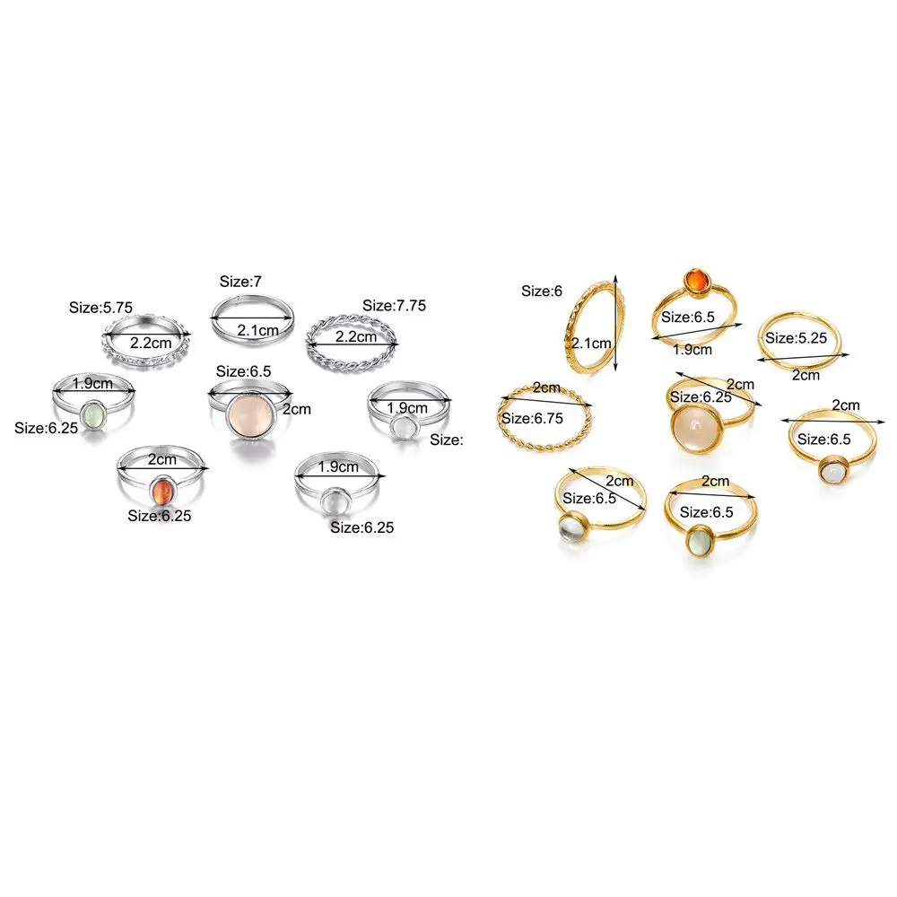 Винтажные кольца с натуральным лунным камнем 8 шт.компл., модные ко...
