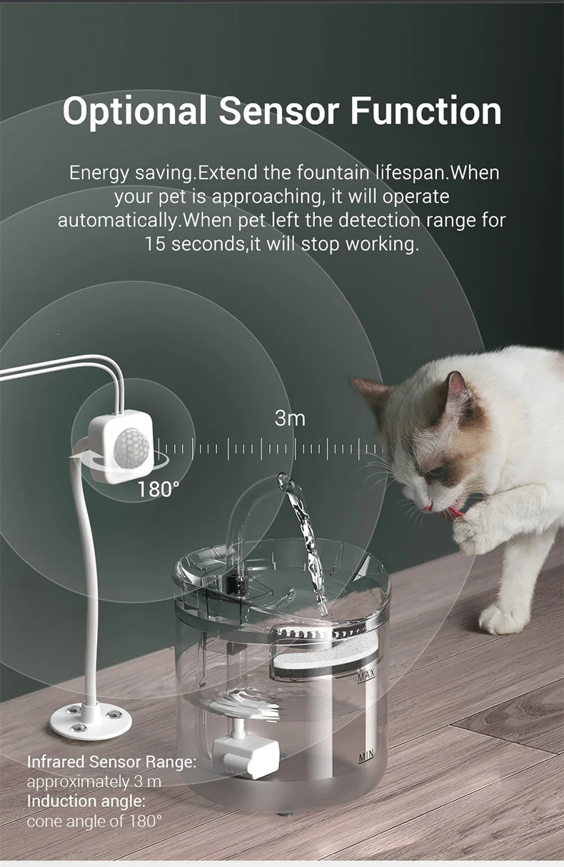 Поилка-фонтан для кошек с автоматическим датчиком, 2 л, для кормушк...