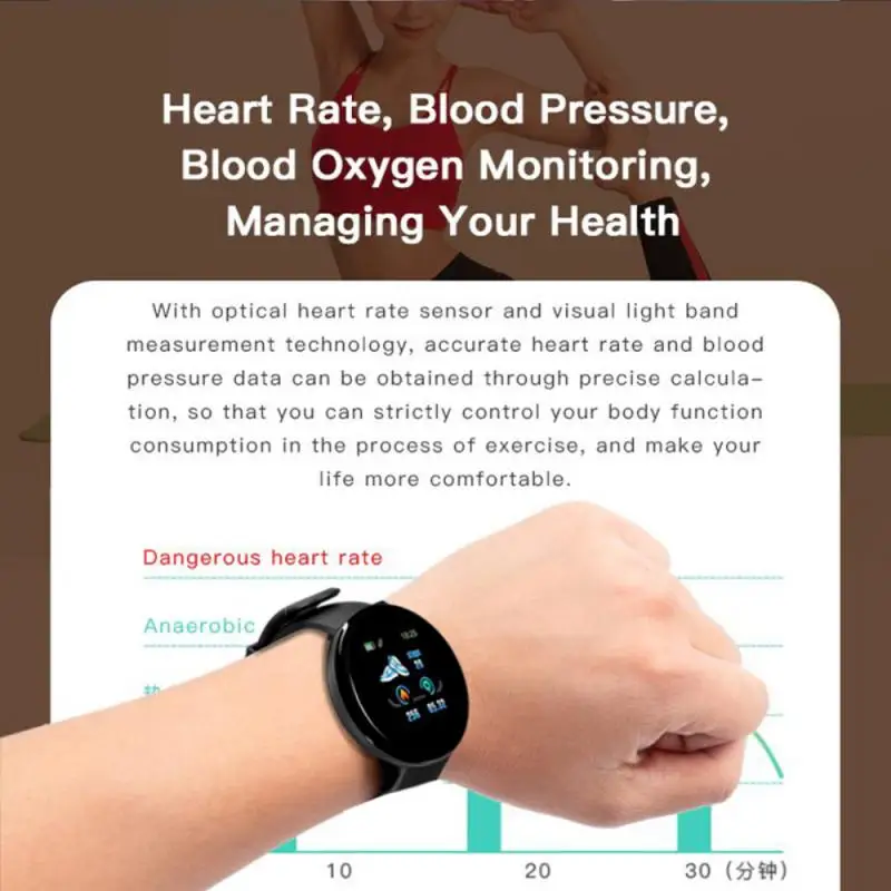 Умные часы D18 для мужчин и женщин, фитнес-трекер с функцией измере...