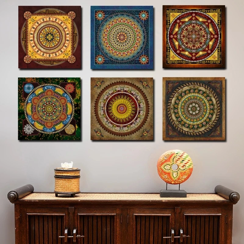 Современная живопись, популярный Тибетский тангка, настенное искусство, холст, Вера, тибетский Будда, мандала Ом, Йога, украшение для дома, картины, настенное искусство