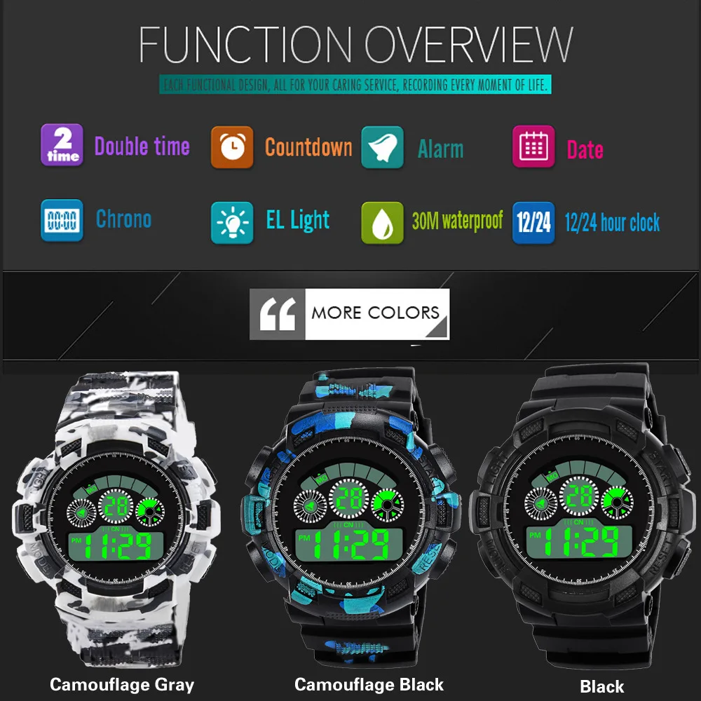 Модные водонепроницаемые мужские спортивные наручные часы для мальчиков с ЖК-дисплеем и цифровым секундомером