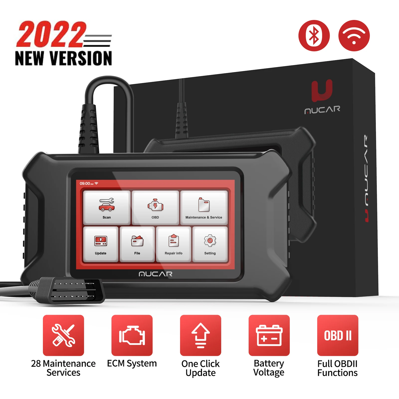 MUCAR CS90 с MUCAR BT200 может сделать полную диагностику системы + 28 услуг сброса + для всех автомобилей