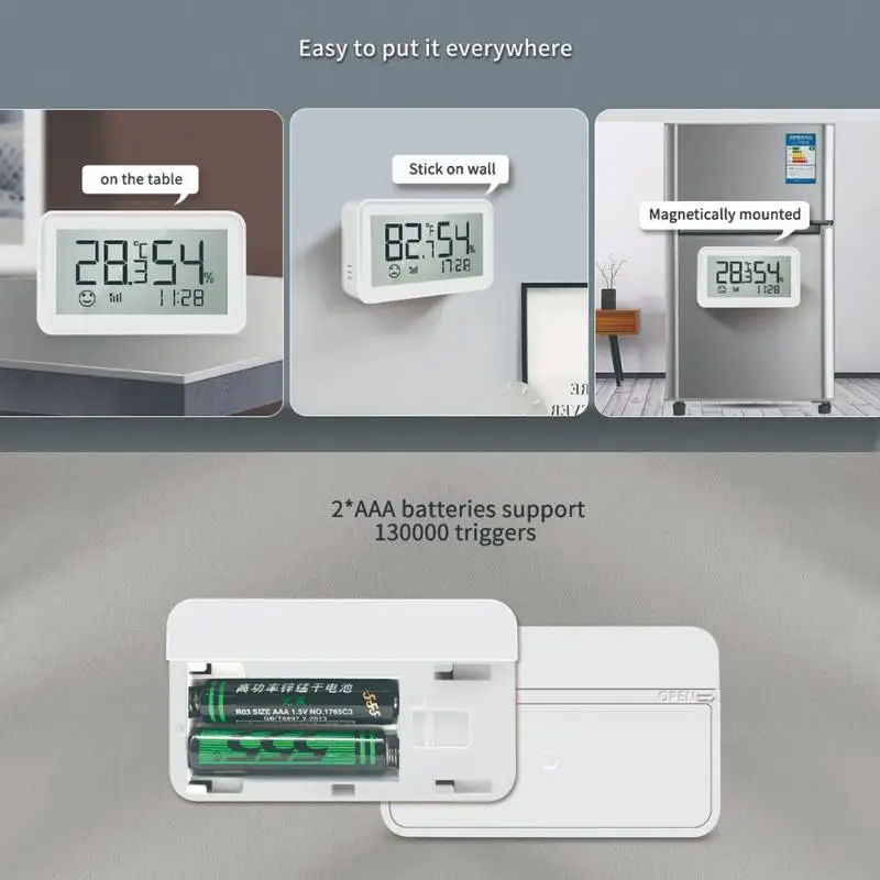 Через приложение «Мобильный телефон» вы можете использовать его с другими смарт-устройствами для создания собственной смарт-сцены. В соответствии с датчиком температуры и влажности, вы можете регулировать влажность и температуру в окружающей среде.