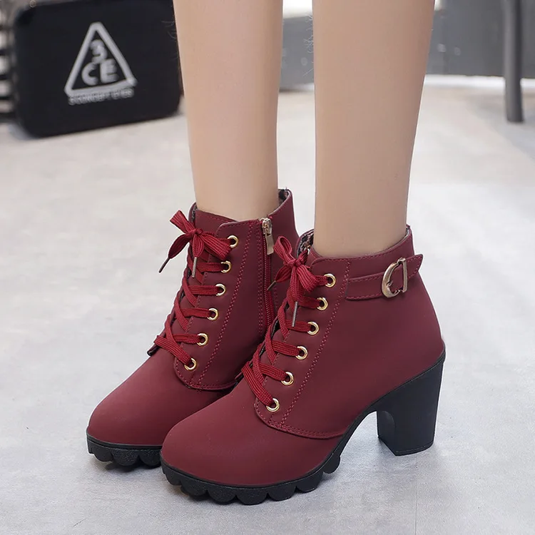 Женские ботинки из ПУ кожи, на шнуровке, на высоком каблуке