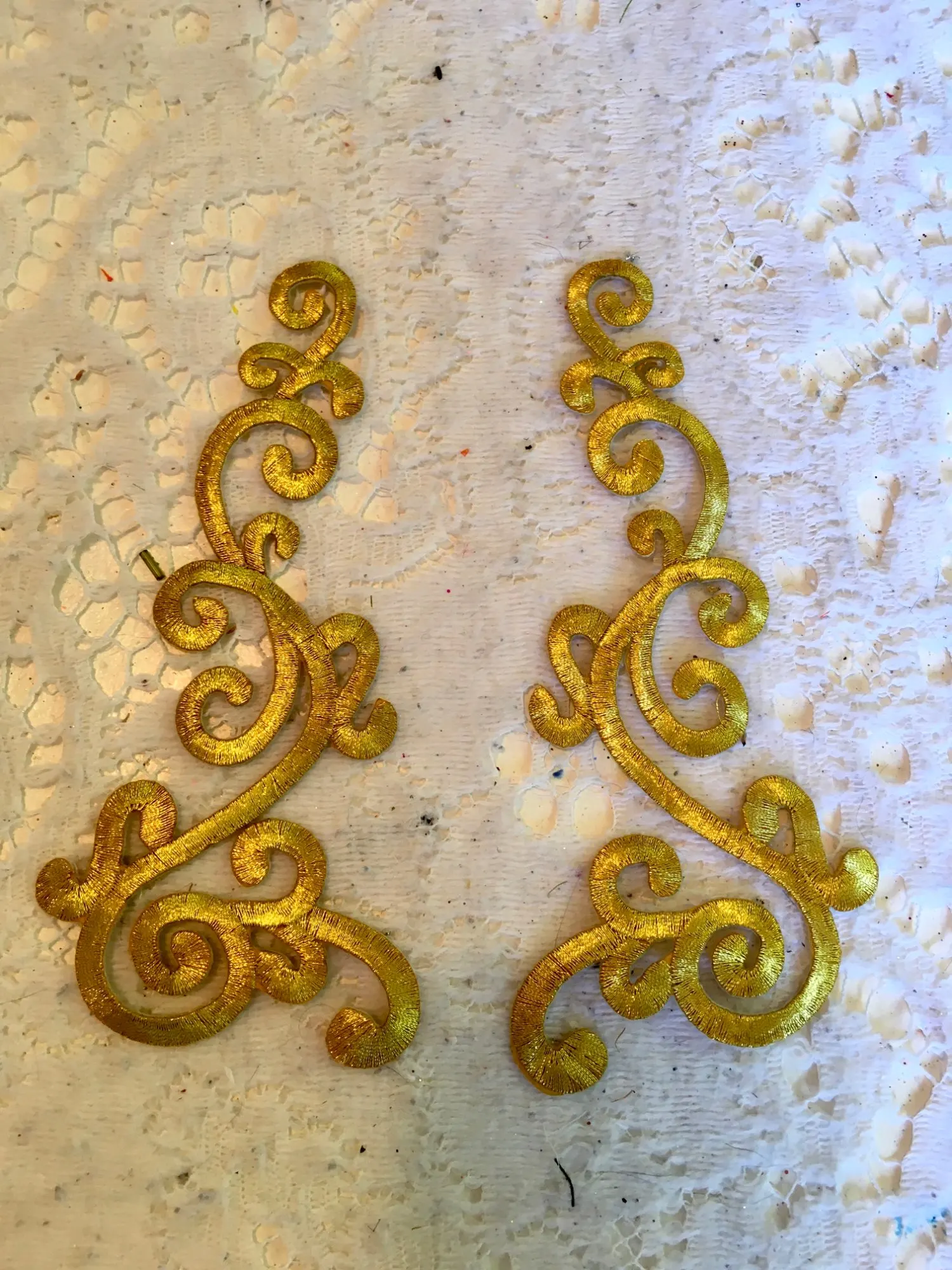 1 ярд золотые вышитые кружева для косплея платья Аппликации утюгом ...