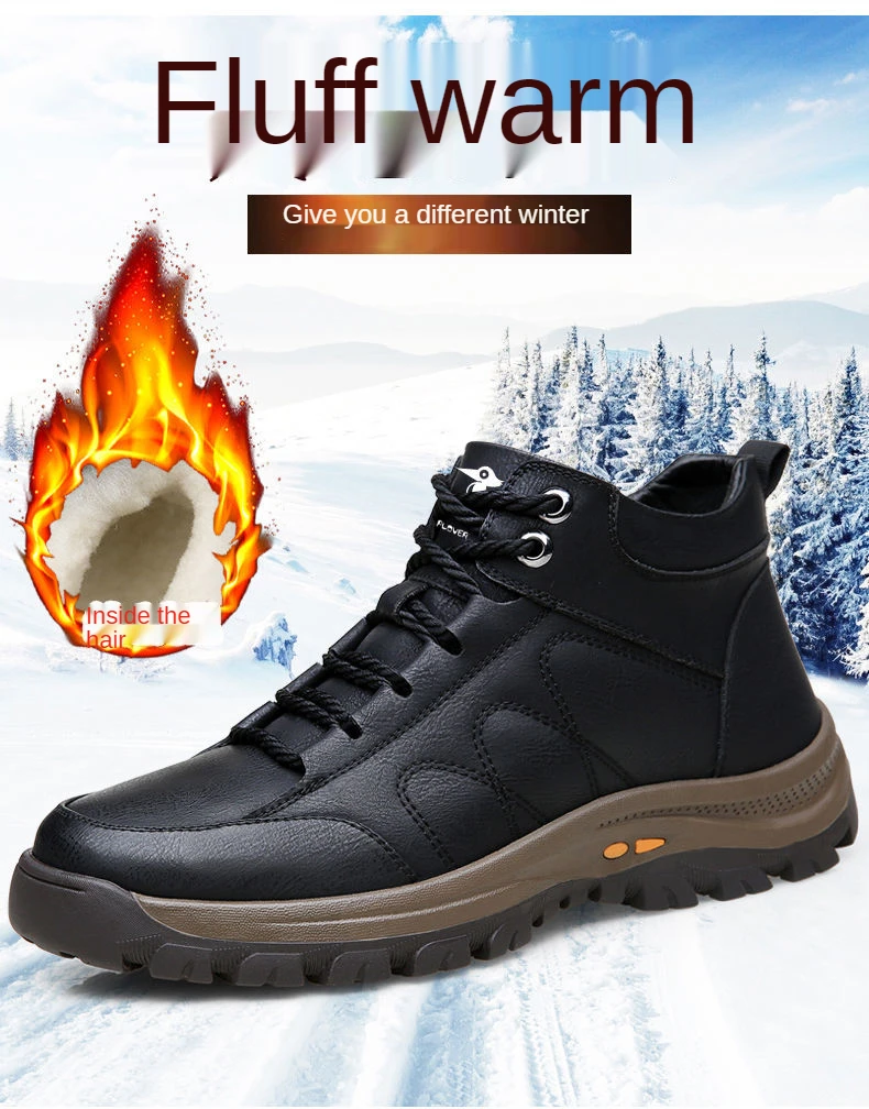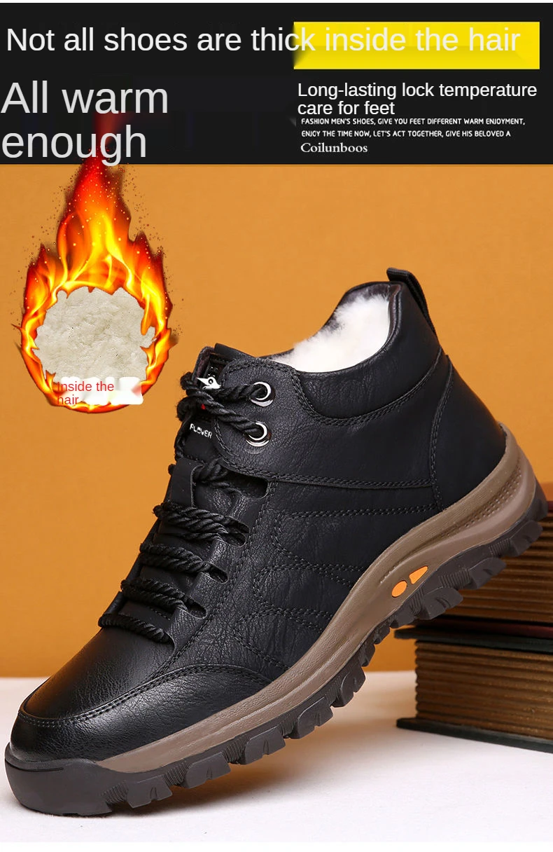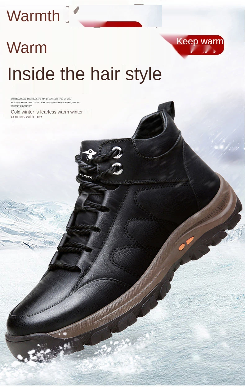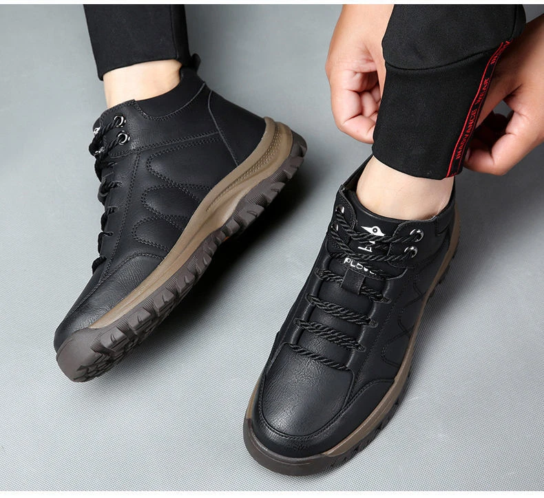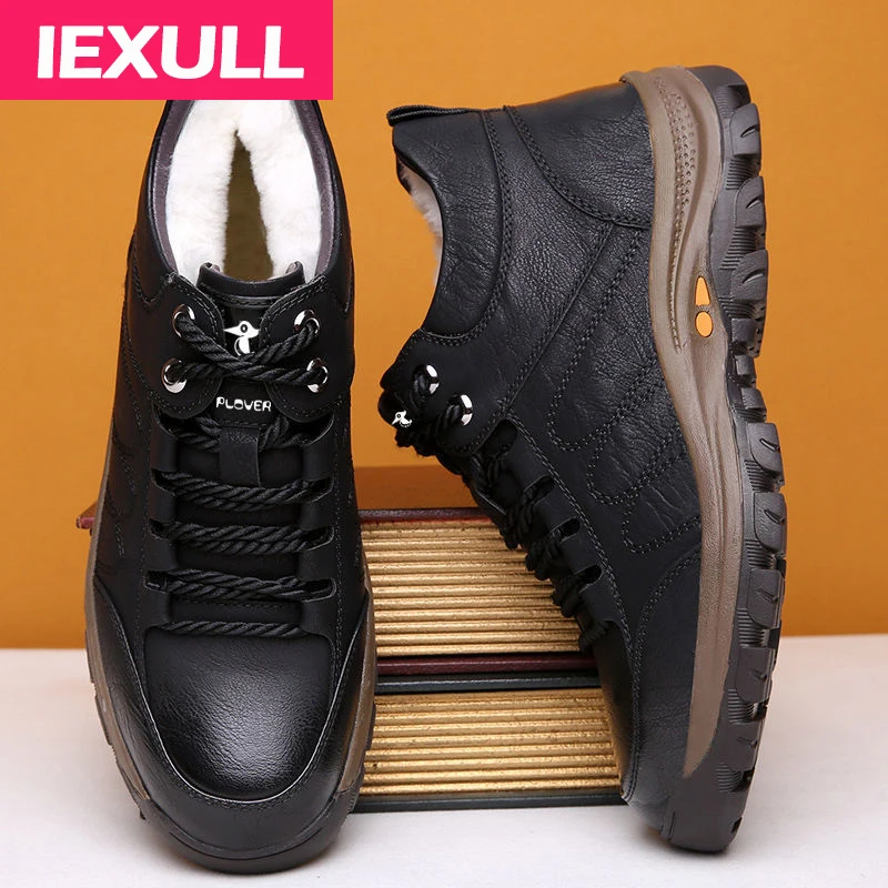 Мужская обувь, зимняя новая кожаная обувь, бархатные толстые теплые хлопковые ботинки, уличная походная обувь