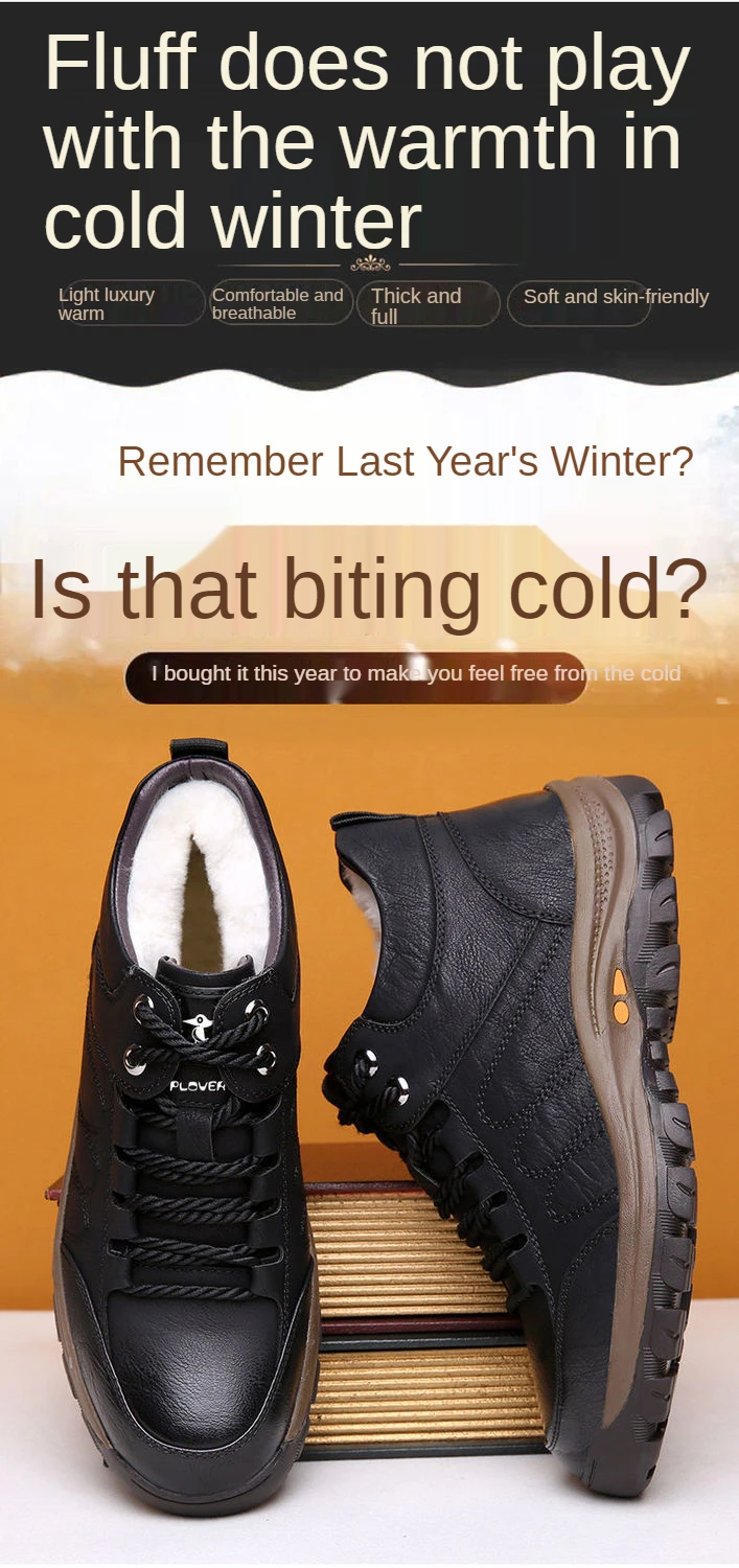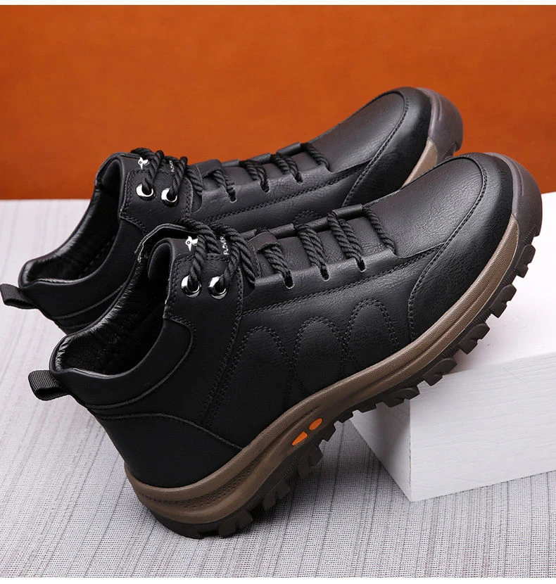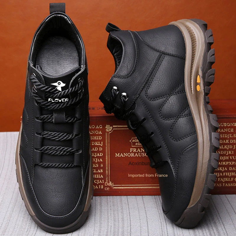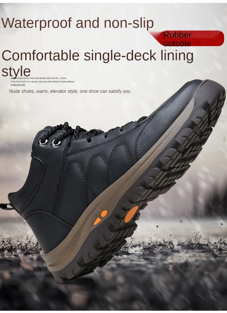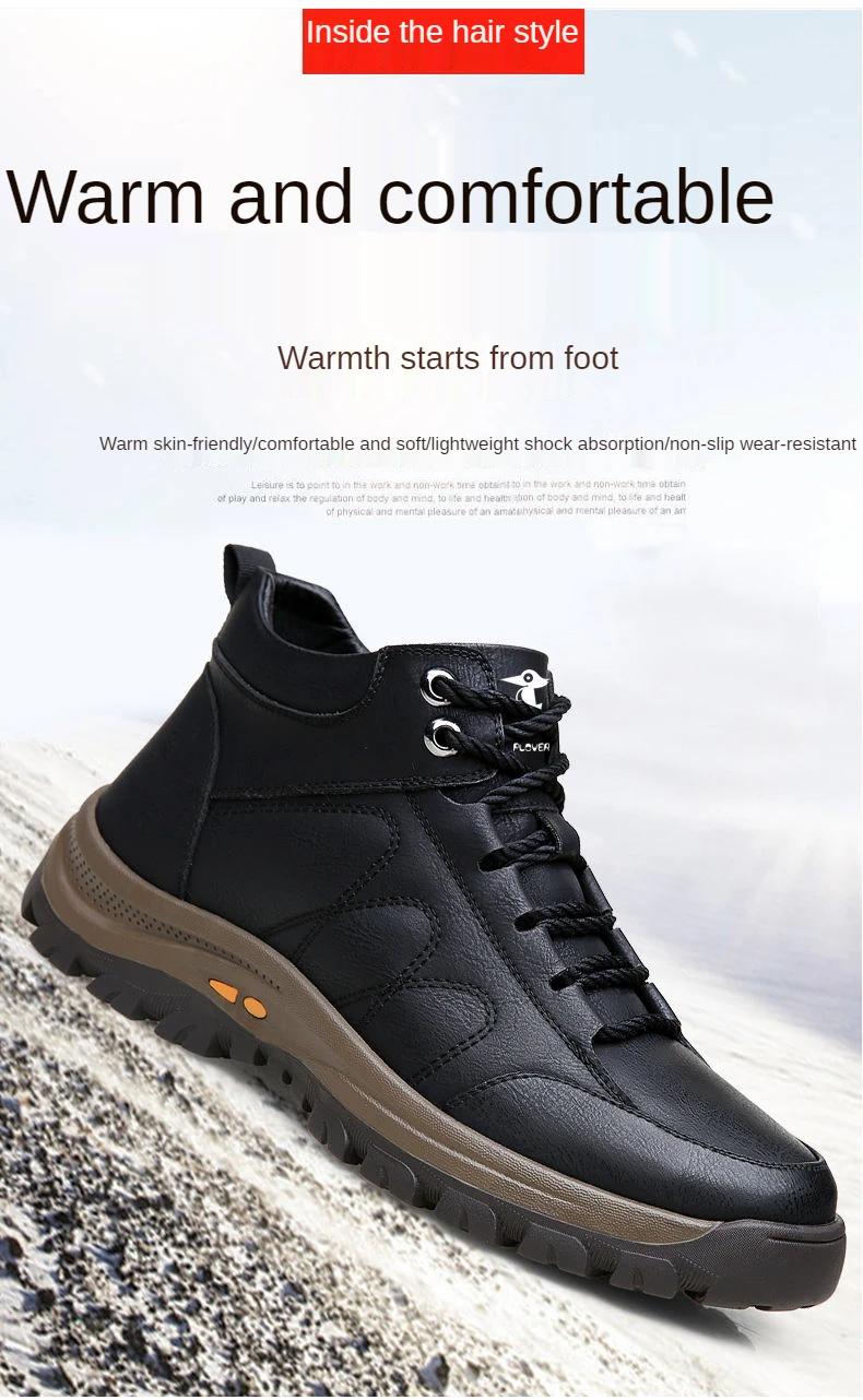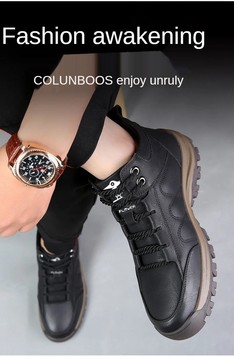 Мужская обувь, зимняя новая кожаная обувь, бархатные толстые теплые хлопковые ботинки, уличная походная обувь