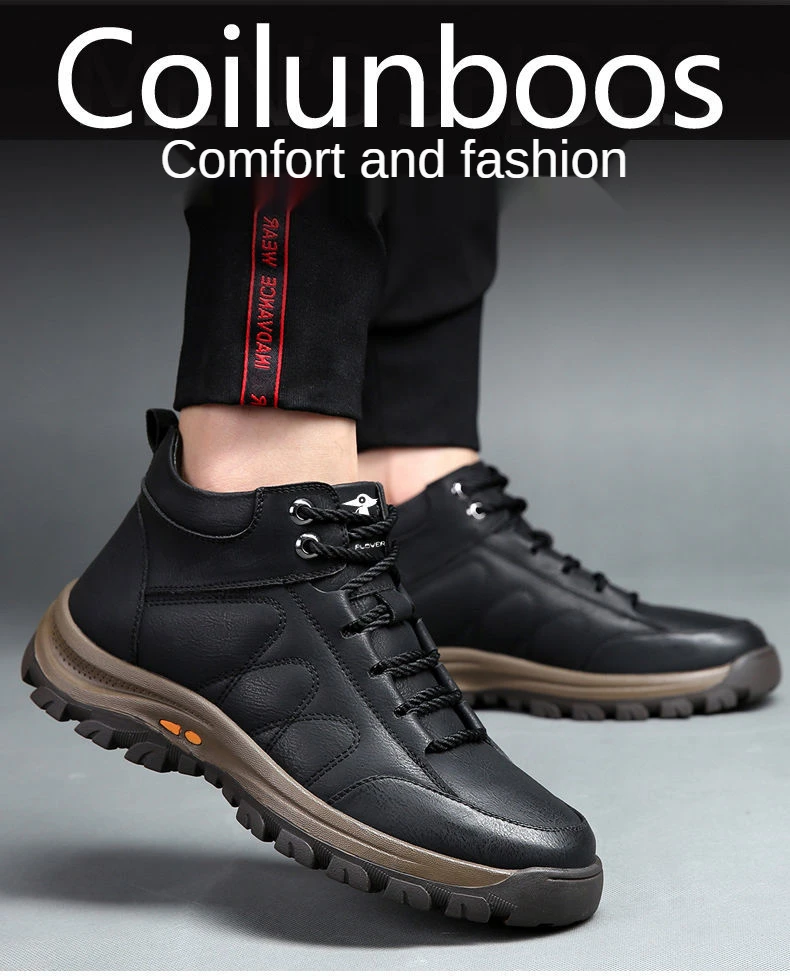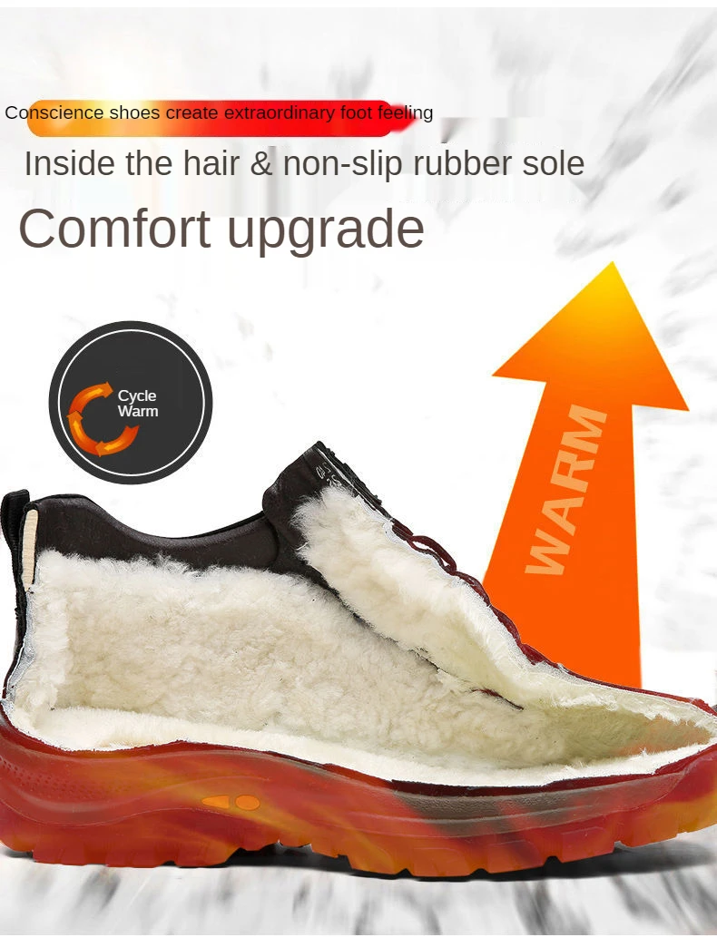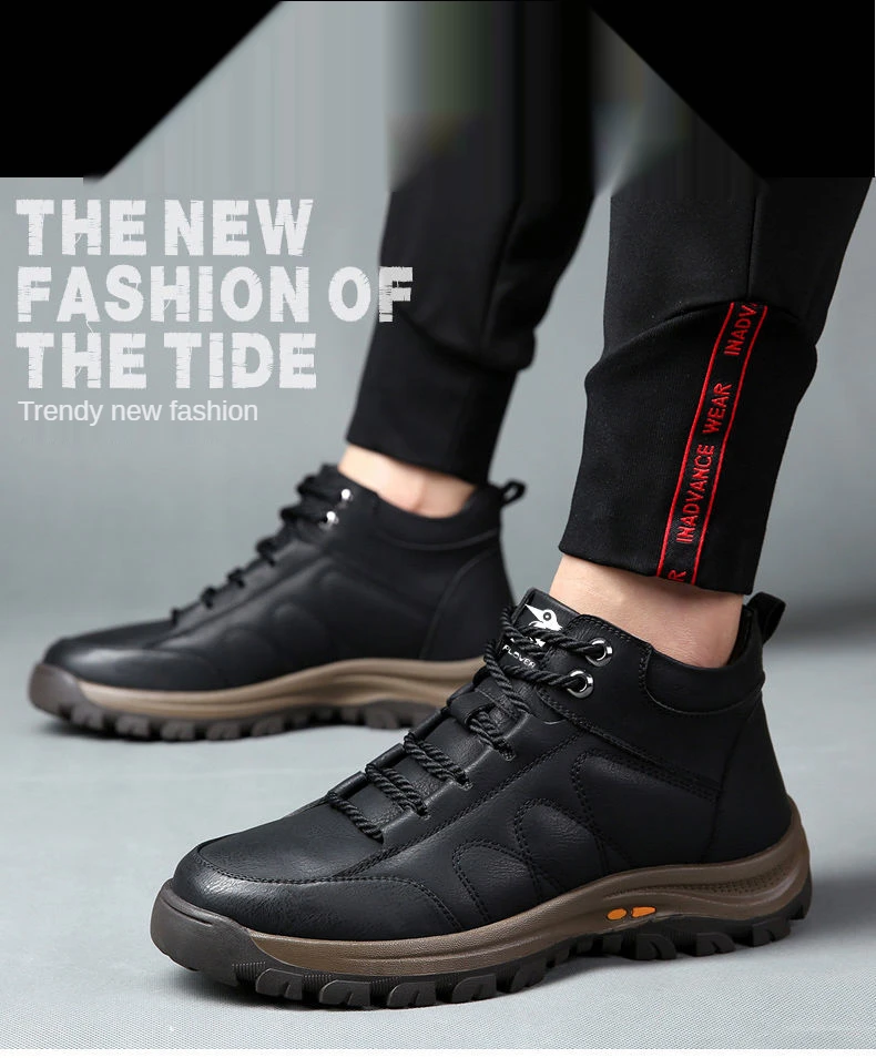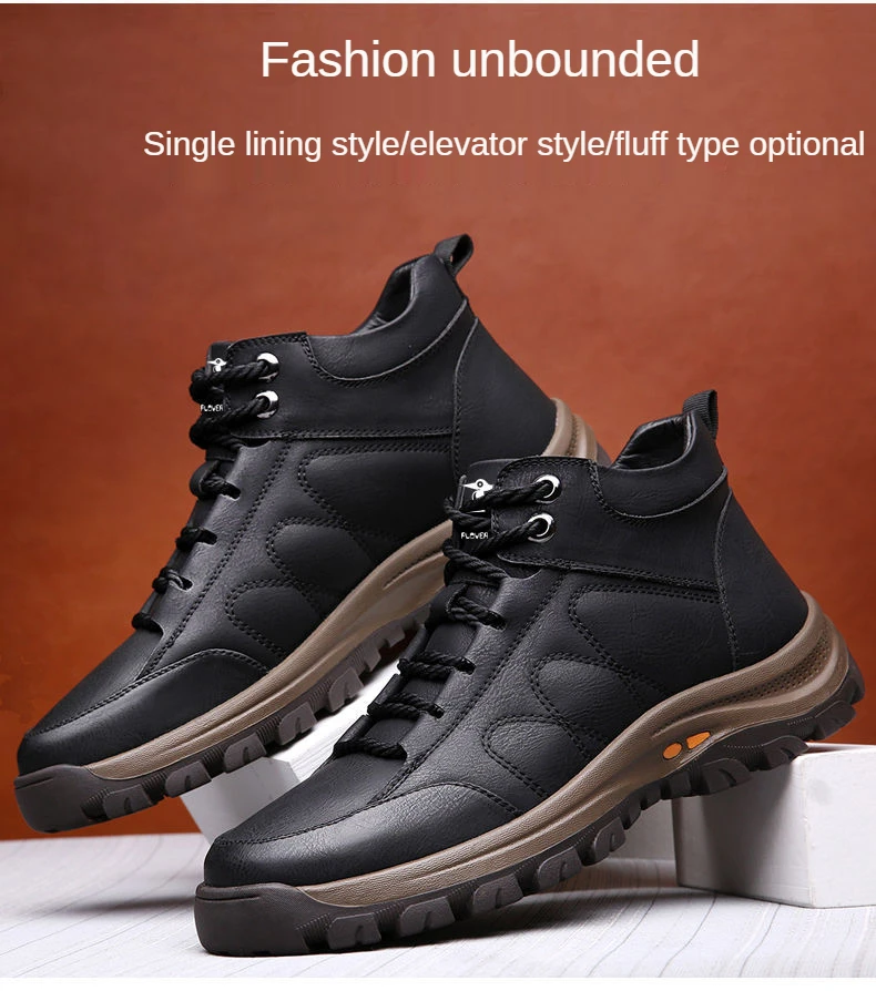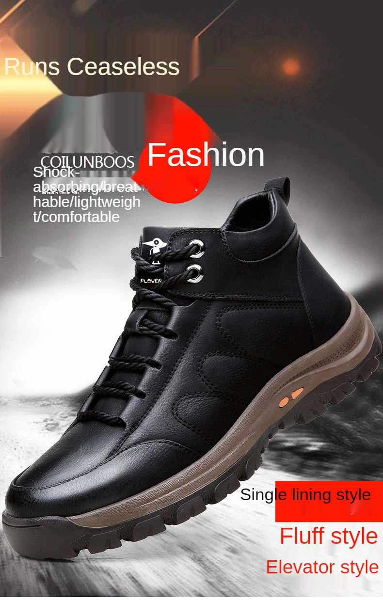 Мужская обувь, зимняя новая кожаная обувь, бархатные толстые теплые хлопковые ботинки, уличная походная обувь