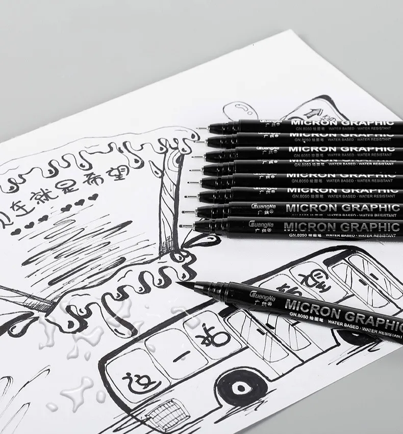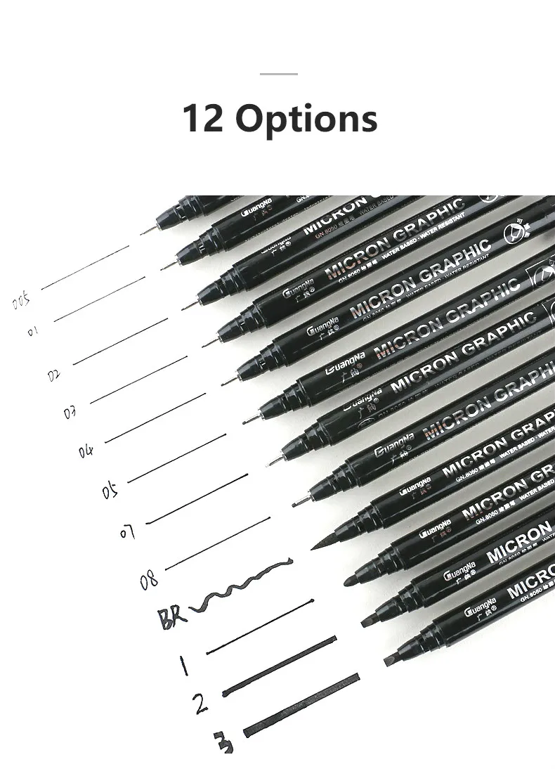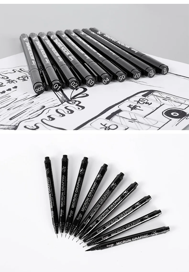 Ручка для рисования Fineliner, сверхтонкие линии, черные чернила, 0...