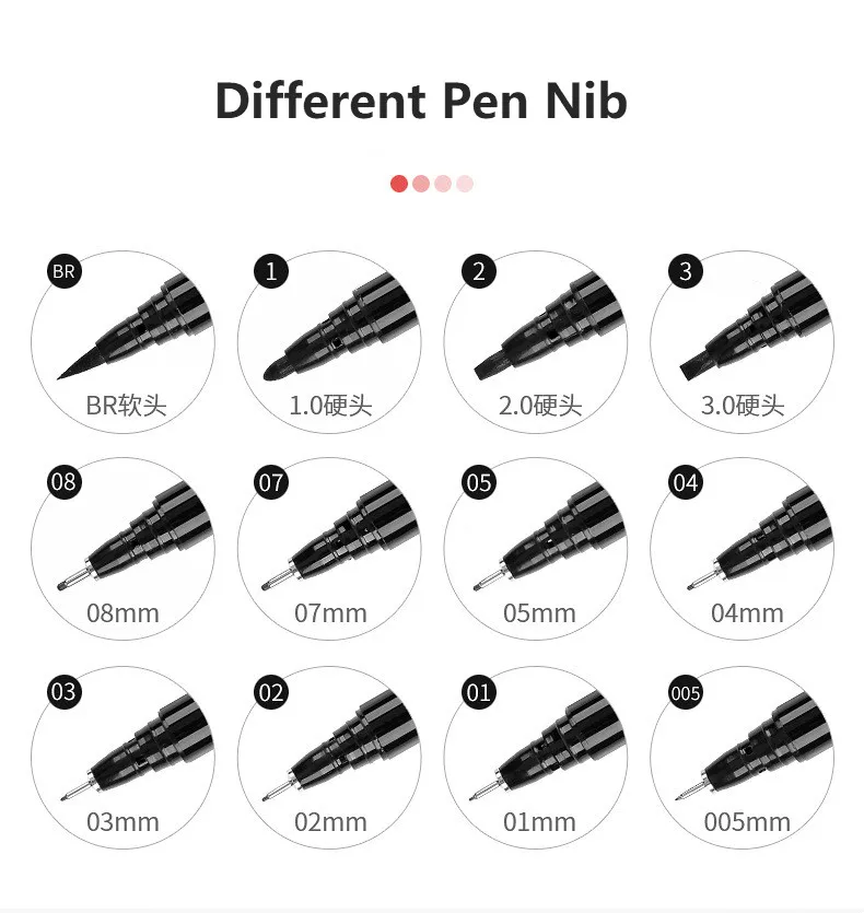 Пигментный лайнер, чернильный маркер, ручка 0,05 0,1 0,2 0,3 0,4 0,...