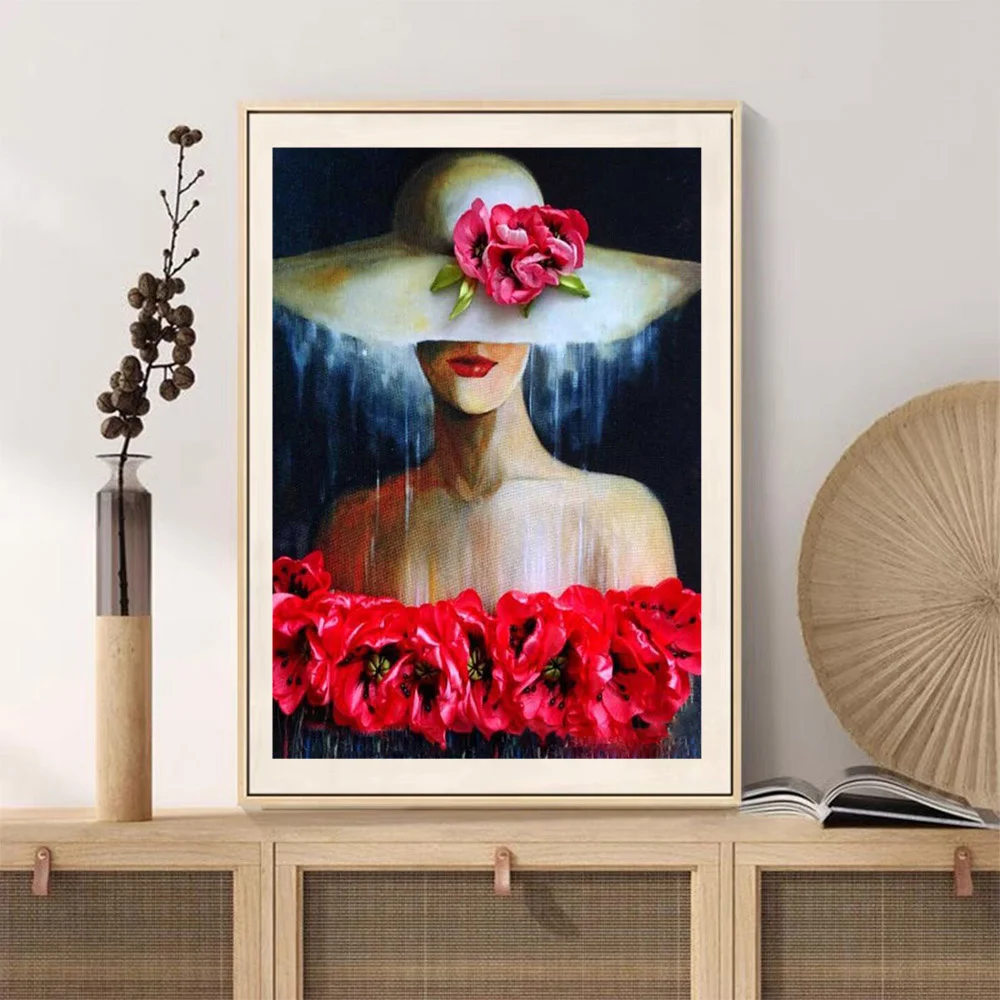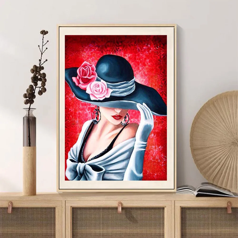 5D алмазная живопись сделай сам, полностью круглая картина, сексуальная шляпа-котелок, Женская Алмазная вышивка, женская искусственная смола, домашний декор, подарки