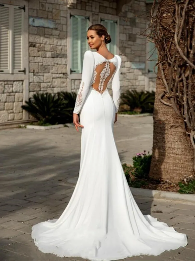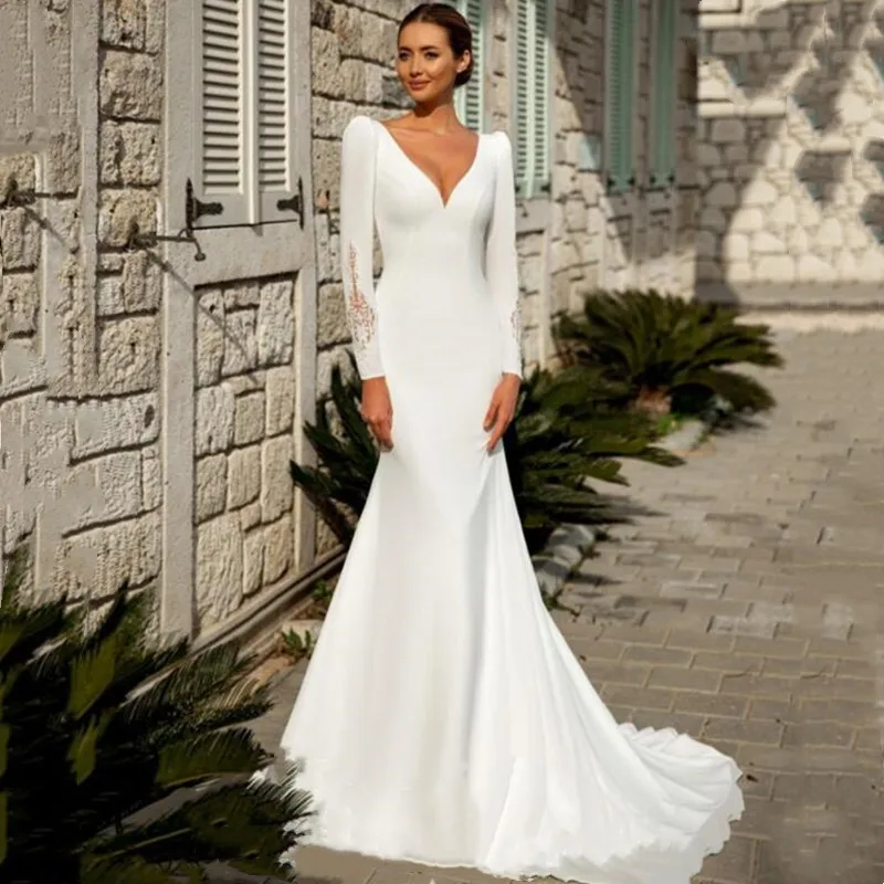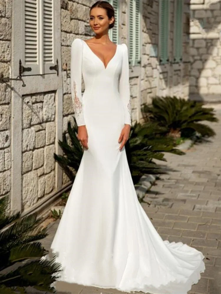 Женское платье с V-образным вырезом, длинным рукавом и открытой спиной