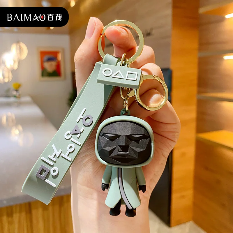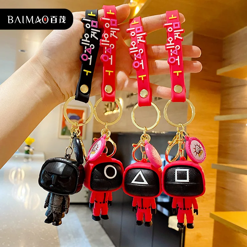Брелок для ключей из игры кальмар, 3d брелок в виде солдата, колокольчика, треугольной серии, мини кукла, брелок для ключей, подвеска для автомобильного рюкзака