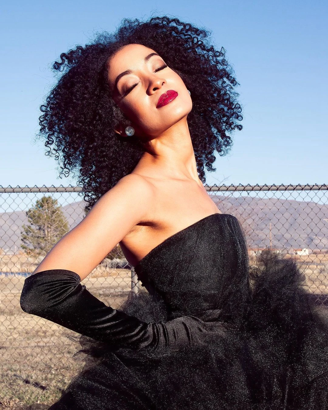 Золотистые тюлевые гофрированные платья для конкурса с высокой горл...