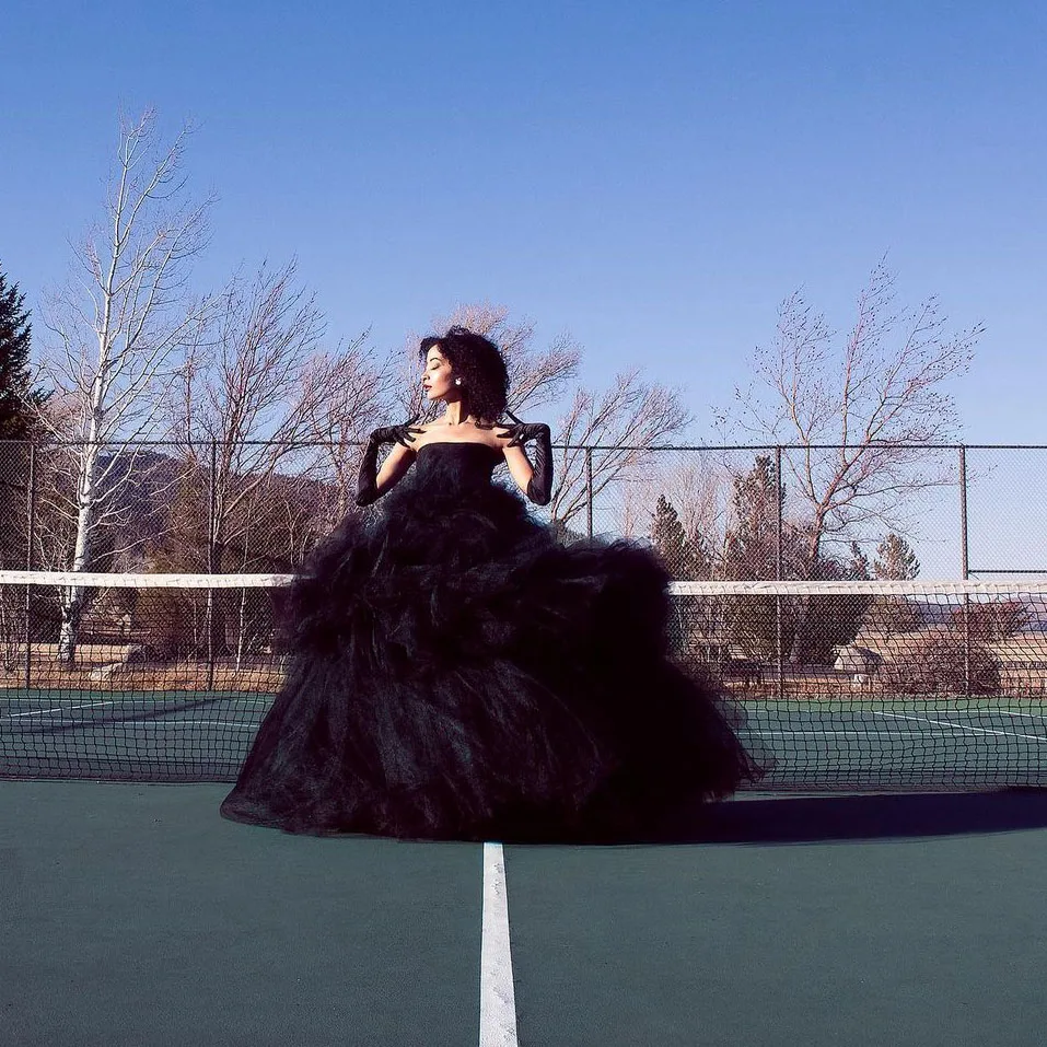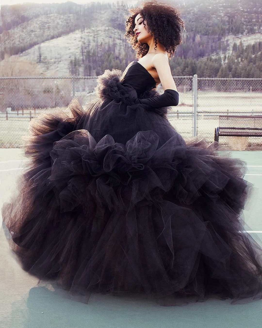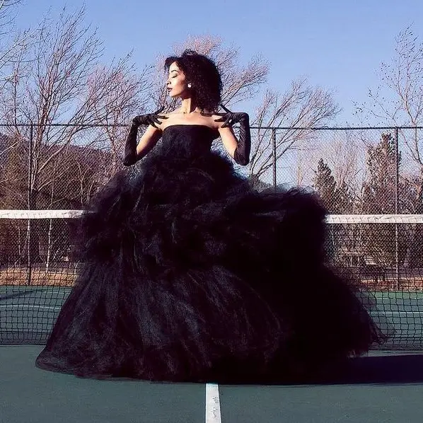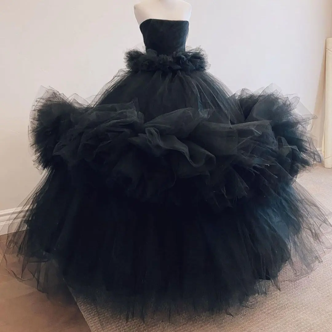 Женское вечернее платье без бретелек Demure, черное многослойное Пышное Платье до пола из тюля с высокой талией и оборками для выпускного вечера