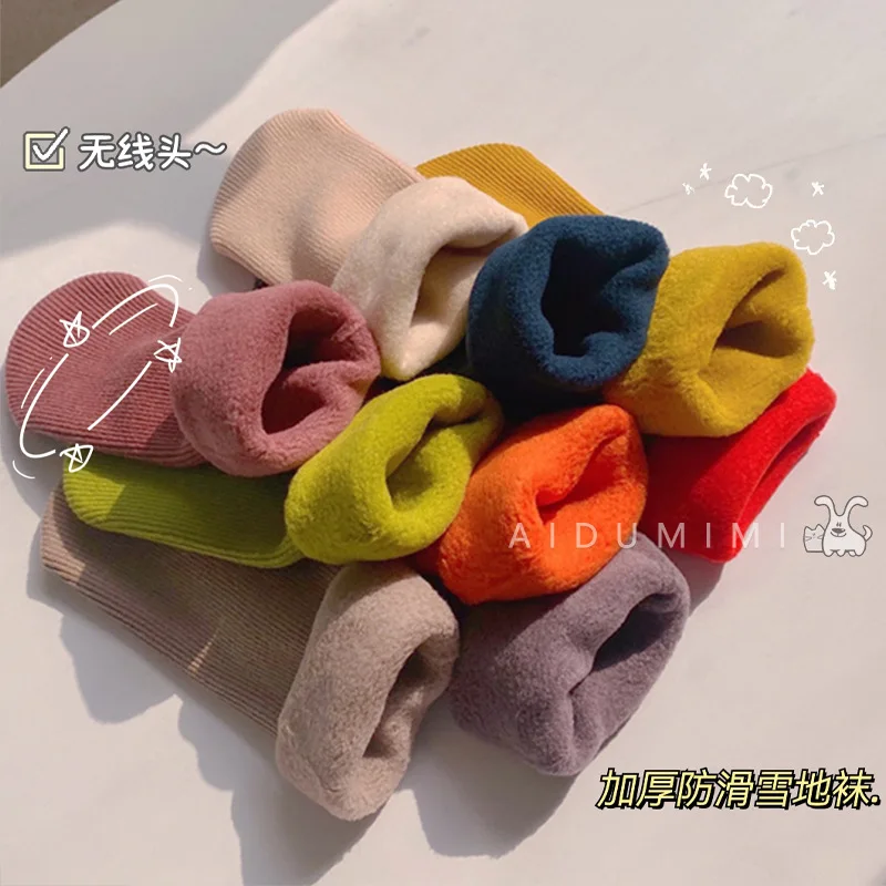 Зимние детские носки, однотонные шерстяные носки для детей, утеплен...