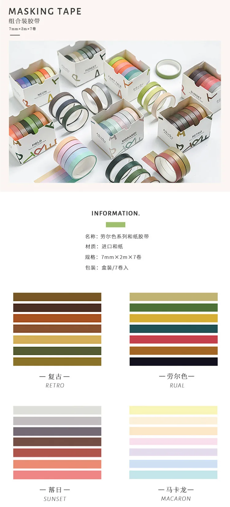 7 шт./компл. Базовая однотонная васи лента Радужная маскирующая лента DIY декоративная клейкая лента наклейка Скрапбукинг дневник Канцтовары