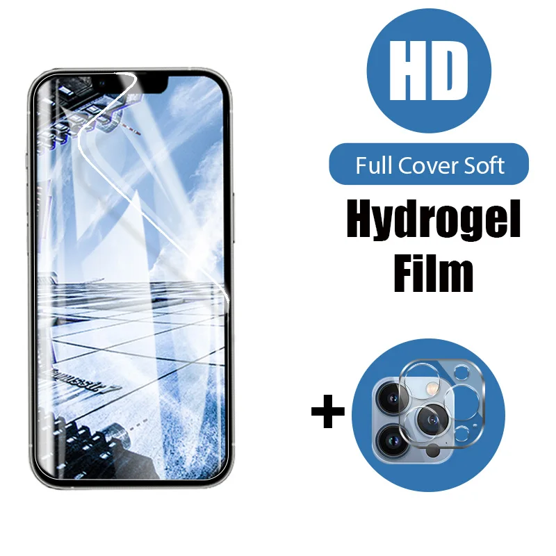 Гидрогелевая Защитная пленка 2 в 1 с полным покрытием, пленка для экрана iPhone 7, 8, 6, 6s Plus, объектив камеры для iPhone X, XR, XS MAX, 11, 12, 13 Pro Max