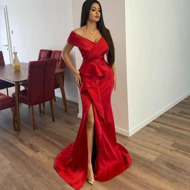 Женское атласное вечернее платье-русалка, длинное атласное платье с...