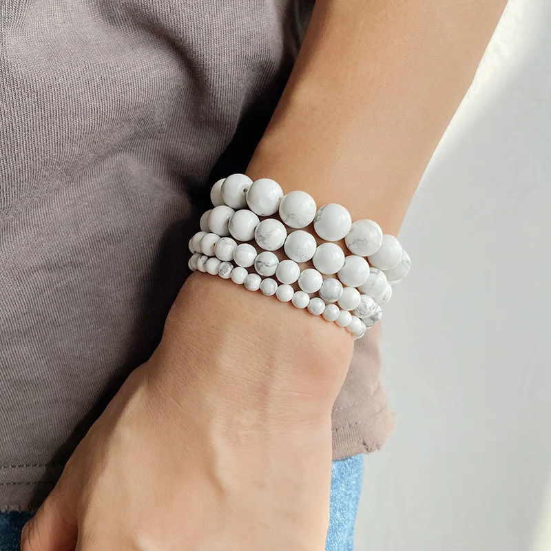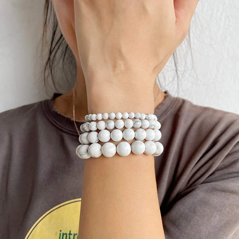 Натуральный белый бирюзовый говлит камень 4/6/8/10 мм бусы, браслеты для женщин и мужчин, энергетическая Йога стрейч медитация браслеты ювелирные изделия