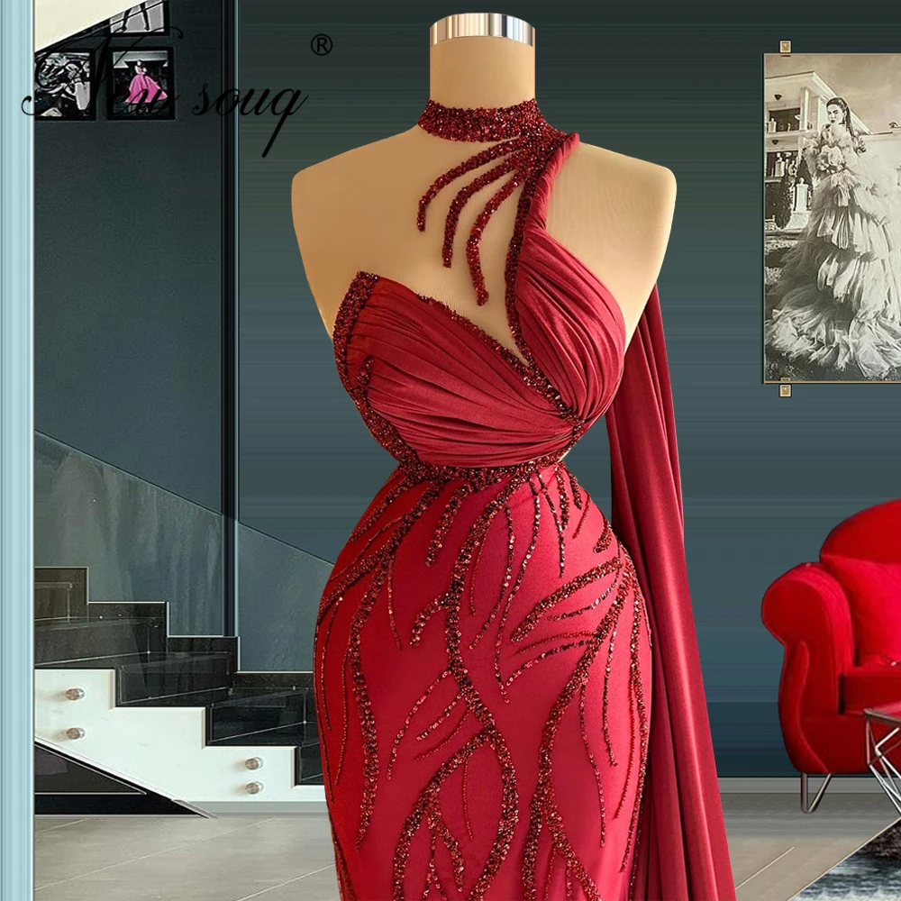 Женское вечернее платье-русалка, длинное красное платье с бисером, в арабском стиле, для выпускного вечера, лето 2021