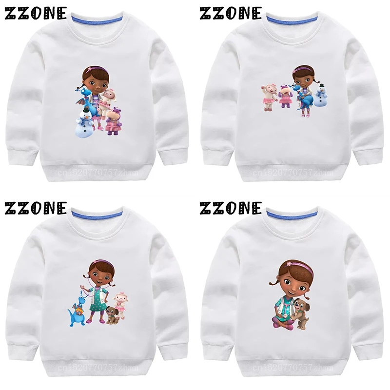Свитшоты для маленьких девочек на весну и осень, симпатичные детские толстовки с мультяшным рисунком доктора макшнурина, детский пуловер, топы, одежда для мальчиков