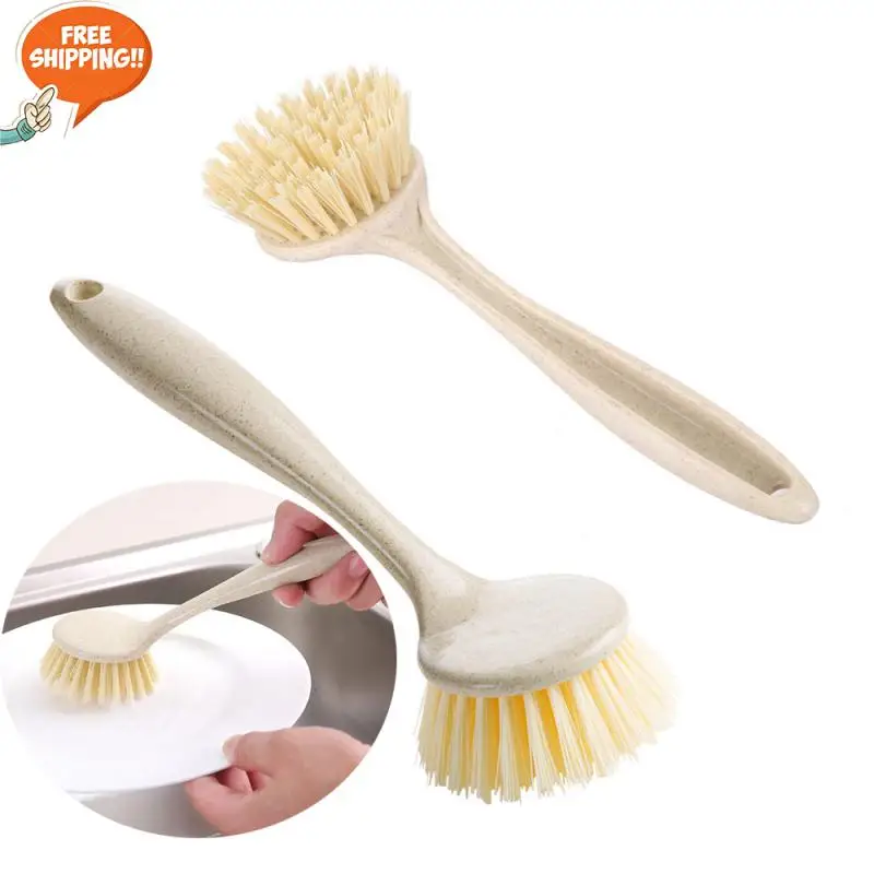Кухонная щетка для мытья кастрюль, очиститель пшеничной соломы, дезактивация, длинная ручка, чаша, кастрюля, щетка для мытья, Бытовые аксессуары