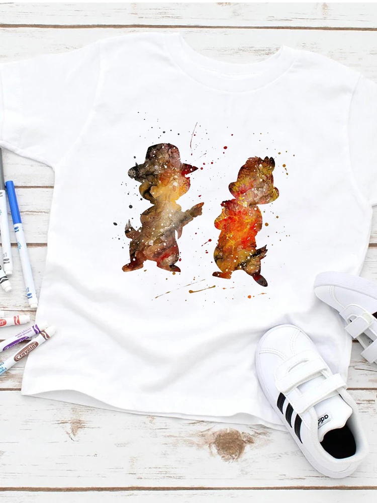 Футболка для девочек с принтом чипа и Дейла, свободные топы с круглым вырезом в стиле Харадзюку, детские летние Графические футболки, забавные