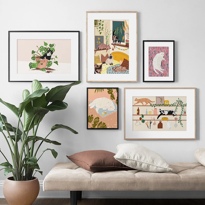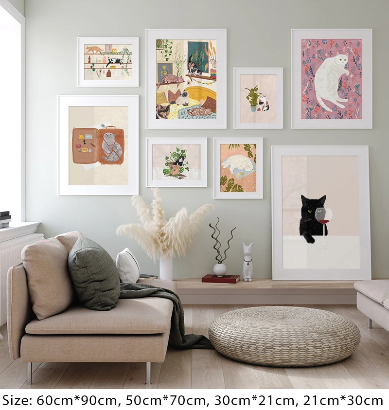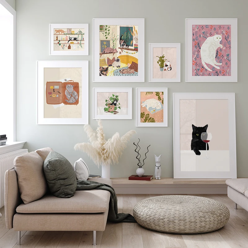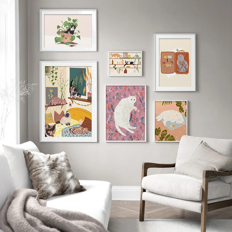 Мультяшный милый забавный кот, современный плакат и печать на холст...