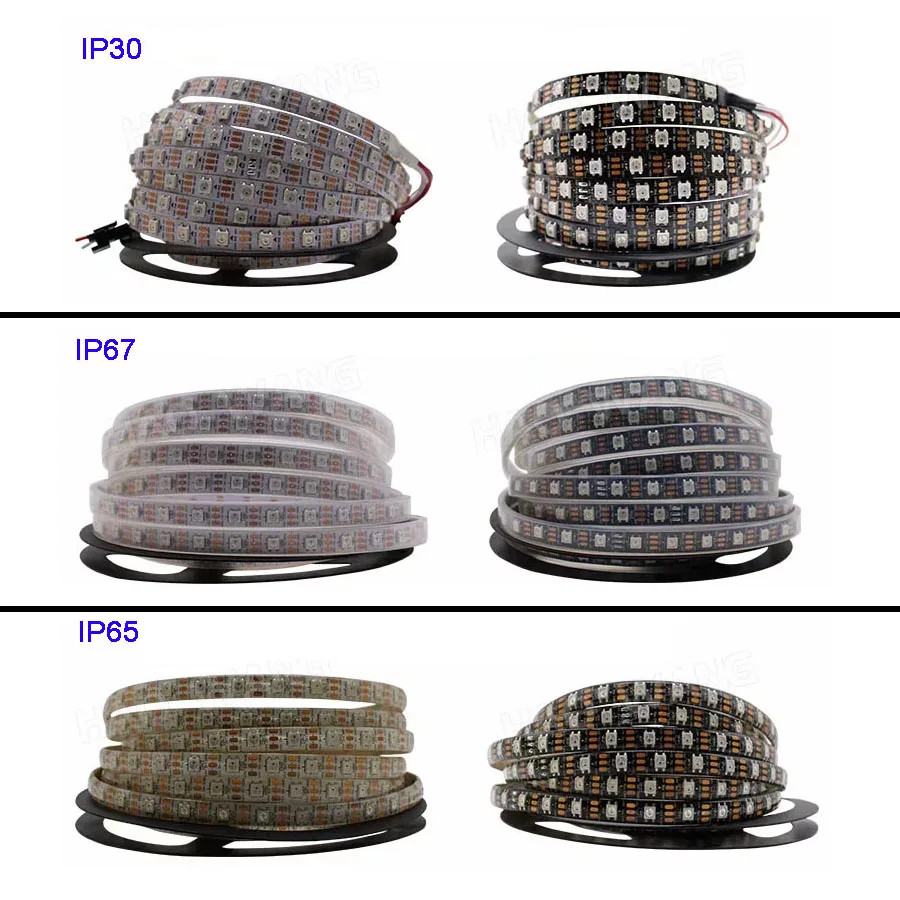 Умная Светодиодная лента WS2812B, 5 в постоянного тока, 1 м2 м3 м4 м5 м, 30607496144 светодиодовм, WS2812 ИС, RGB пикселей, WS2812Bm, светящаяся лента IP30IP65IP67