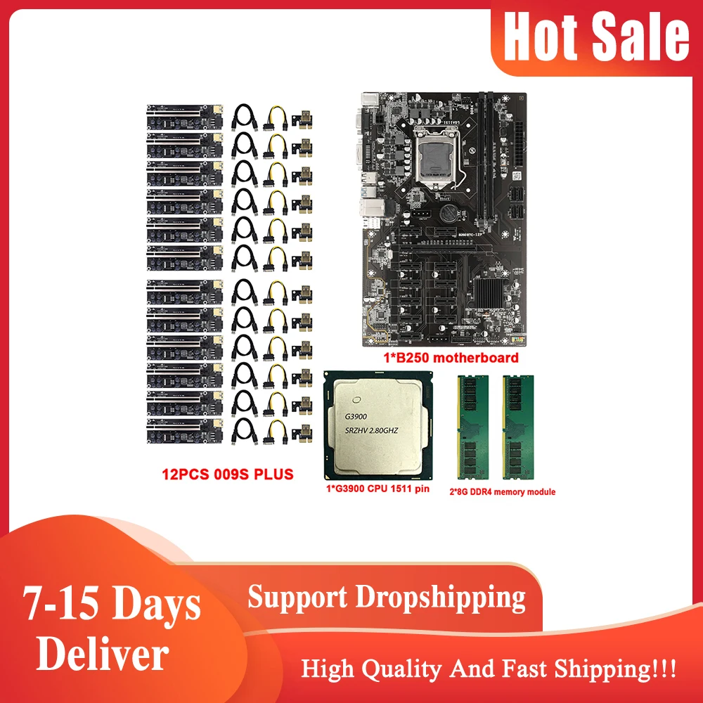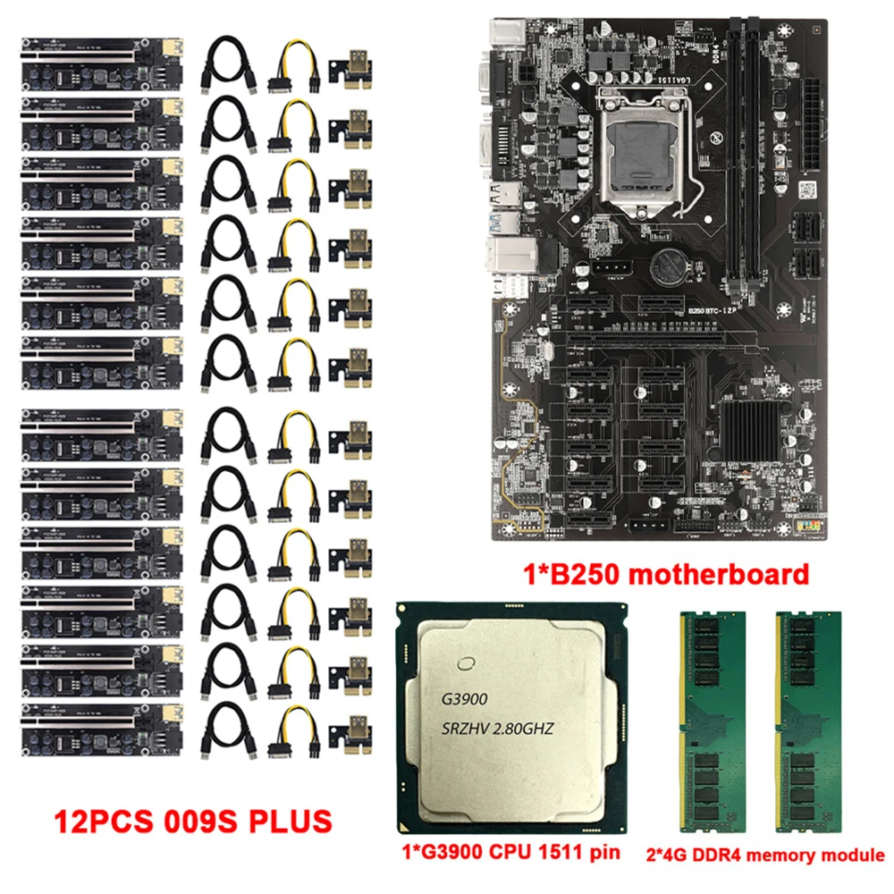 Материнская плата: BTC-B250Описание:Высокая производительность и высокая надежность, долговечная Замена для старого или поврежденного, больше не нужно беспокоиться о том, чтобы не найти правильные аксессуары.Быстрый запуск, загрузка и передача файлов.Низкое энергопотребление, тихий, надежный и прочный.Эффективно уменьшает помехи интерфейса и потери провода, чтобы обеспечить надежность данных, чтобы повысить эффективность работы.Так что питание основной платы не зависит от внешних помех.Спецификация:Наименование товара: материнская плата BTCЦвет: черныйМатериал: PCB + металлРазмер: 29,5x19 смТип памяти: DDR4Слот для памяти: 2 × DDR4Частота: 2133/2400/2800/3000 МГцПамять: максимум 16 гНабор микросхем: Intel B250Тип гнезда ЦП: LGA 1151Разъем питания: 1*4pin, 1*24pinРежим питания: 3 фазы, 2 гнезда вентилятора ЦПСлот расширения:1 * графический слот PCI-E X1611 * PCI-E X1 графический слот2 * USB2.0 булавки1 * USB3.0 pin1 * COM pin2*4p квадратный порт питания4 * порт SATA3.0Порт ввода/вывода:2 * PS/2 порта клавиатуры и мыши универсальный порт1 * RJ45 100 м Ethernet порт1 * DVI выход высокой четкости1 * VGA2 * Порт USB 3,04 * USB 2,0 портFeature1: скорость с 12 разъемами PCIe и только одним разъемом питанияОсобенности 2: разделяет 12 слотов PCIe на 3 группыFeature3: 5X Защита III аппаратный уровень гарантии с безопасным слотным ядром.Feature4: защита LAN и защита от перенапряженияFeature5: обнаружение состояния слота PCIeFeature6: поддерживает до шести портов USB 3,0Feature7: поддерживает до шести портов SATA 6 Гбит/с, скорость полосы PCIe 3,0CPU:G3900 SR2HV 2,80 GHZ LGA 1151Описание:Многоядерный многопоточный процессор.Стабильная работа и хорошая совместимость.2 м кэш, что делает его лучше, чтобы справиться с высокой нагрузкой.Низкоэффективный процессор, низкое тепловыделение, подходит только для материнской платы горнодобывающей машины.Цвет: серебристый + зеленыйМатериал: монокристаллический кремнийРазмеры: 37,5*37,5 ммМодель: G3900Применимый Тип: Рабочий столСерия процессора: двухъядерный процессор CeleronПроизводственный процесс: 14 нанометровНазвание основного кода: SkylakeАрхитектура ЦП: SkylakeТип разъема: LGA 1151Процессор частота: 2,8 ГГцКоличество ядер: двухъядерныйКоличество нитей: двойная нитьКэш уровня 3: 2 МбСпецификация шины: DMI3 8GT/sТепловая мощность (TDP): 51 ВтПоддержка максимальной памяти: 64 ГБТип памяти: DDR4 1866/2133 МГц, DDR3L 1333/1600 МГц @ 1,35 вМаксимальное количество каналов памяти: 2Максимальная пропускная способность памяти: 34,1 ГБ/сек.Поддержка памяти ECC: ДаВстроенная графика: Intel HD graphics 510Основная частота видеокарты: 350 МГцМаксимальная динамическая частота видеокарты: 950 МГцDDR4 4/8 ГБ модуль памятиОписание:Изготовлен из PCB + емкости + медной проволоки, супер стабильный.Оловянный и медный проводник имеет лучшую электропроводность и возможность подавления помех, которые могут ускорить передачу данных.PCI-E 1X карта поставляется с светодиодный и т. Д. Подключение загорается.Оригинальные электронные чипы, более эффективные для вашей добычи.Защита патентных слотов для карт, более быстрая и стабильная передача данных.Характеристики:Тип товара: переходная карта PCI-E 009S PlusЦвет: черныйМатериал: PCB + емкость + медный проводРазмер: 129x44ммДлина кабеля USB: 60 смИнтерфейс: PCI-E X1,PCI-E X16, USB3.0,6PinПримечание:-Поскольку каждая партия сырья может отличаться, переходная карта PCI-E может немного отличаться от внешнего вида (например, твердый конденсатор, Кабели USB 3,0, разъем PCI Express x16, модель чипа, шелковая печать), но функция така