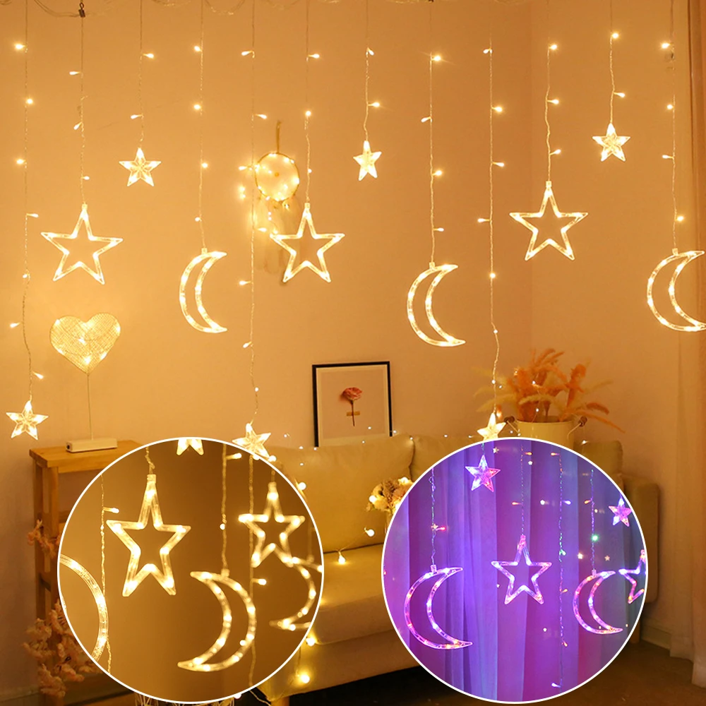 СВЕТОДИОДНАЯ Гирлянда-занавес в виде звезд и лун, 8 режимов, Сказочная гирлянда, гирлянда для украшения дома на Рождество, спальню, свадьбу, День Святого Валентина, украшения