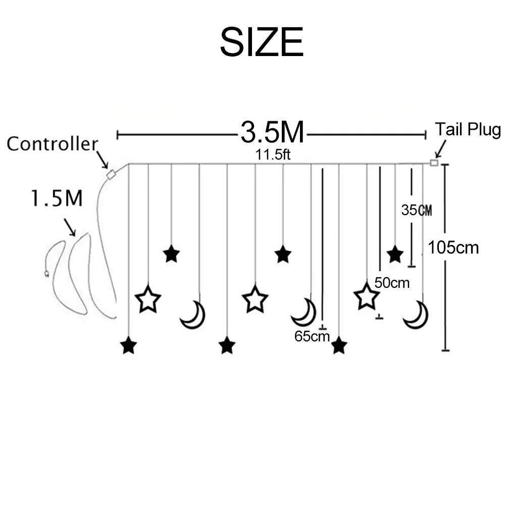 Спецификация:Материал ПКДлина (Д х В): 3,5 M / 11.5ftКоличество СВЕТОДИОДНЫЙ: 124 шт. светодиодный s-12 подвесных струнКоличество аксессуаров: маленькие звезды: 6 шт., большие звезды: 3 шт., большие Луны: 3 шт.Аксессуары для Размеры: маленькие звезды: 10*10 см/3,94*3,94 дюймов, с большими звездочками: 20*20 см/7,87 дюймов, большой Лун: 18*16 см/7,09*6,3 дюймовРазмер:Светодиодный Blubs интервал: 12 см/0,39 футовМощность: 6 ВтСветодиодный цвет: теплый белый/РазноцветныйЦвет кабеля: ПрозрачныйКоммутационным шнуром Длина включая контроллер: 1,5 m / 5FtНапряжение: ac220вВодонепроницаемость: IP44 (светильник водонепроницаемый, вы можете использовать его на открытом воздухе, но контроллер не является, вам нужно его защитить)